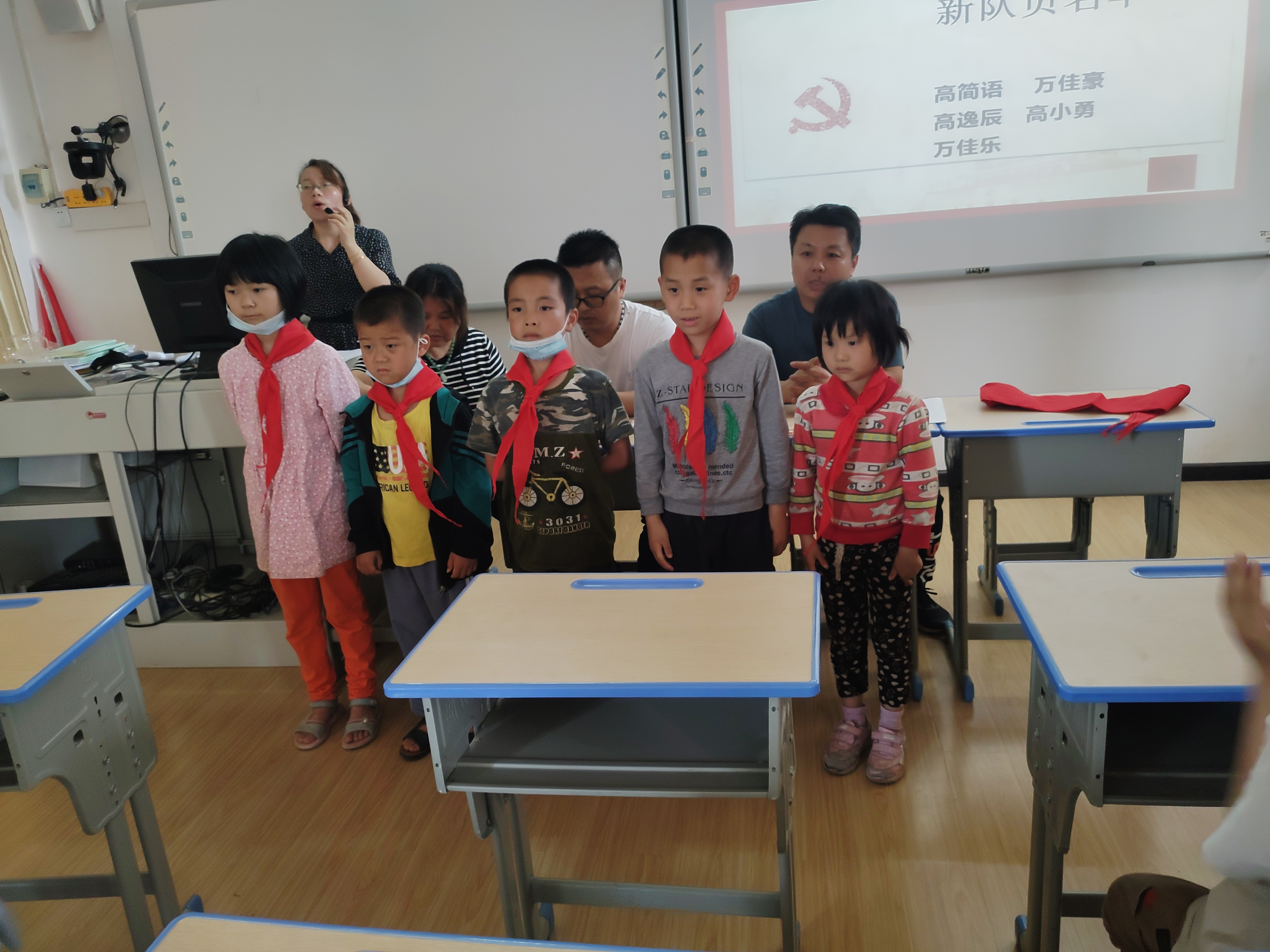 此次加入少先队组织的新成员有五名。当他们戴上红领巾的那一刻,我看到了他们发自内心的笑容,当听到新队员代表讲话时,我看到了我们少先队组织的希望。