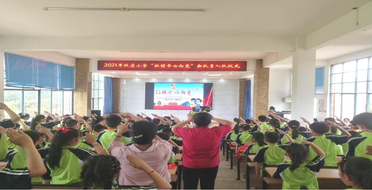 2021年6月1日上午8点20分,沐浴着明媚的阳光,伴随着孩子们愉快的笑声和熟悉的出旗乐曲声,段店小学“红领巾心向党”新队员入队仪式拉开了帷幕。