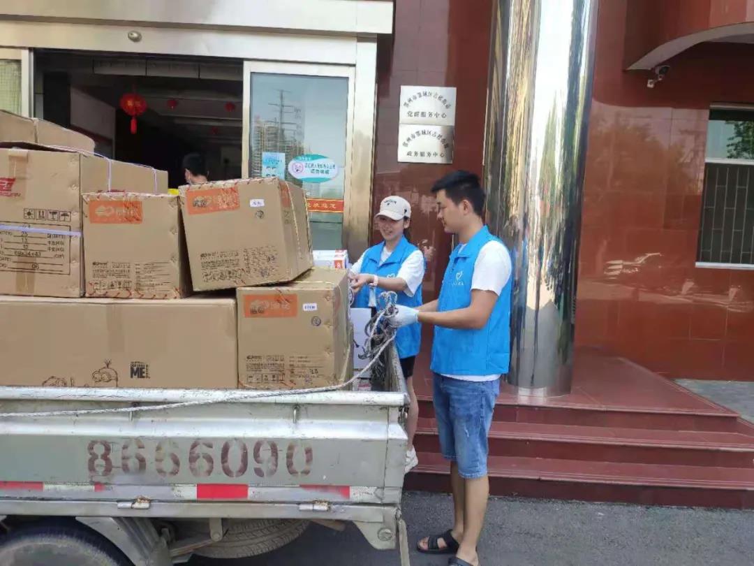 90后夫妻志愿者:鄂州市中心医院职工张晶、儒学社区工作人员操文进利用周末时间帮助协调车辆,志愿转运慰问物资