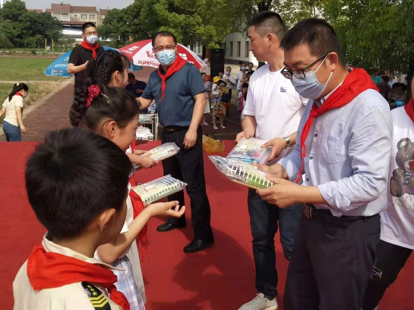 活动开始前,镇党委书记花小平、镇长阮新安及镇团委书记为夏沟小学8名留守儿童送去爱国主义教育读本、体育用品和学习文具等节日礼物,关心了解留守儿童生活和学习情况,叮嘱他们注重身心健康,有问题及时解决,嘱咐学校与镇团委关心儿童身心健康发展,注意加强爱国主义教育,为社会主义事业发展培养好接班人。