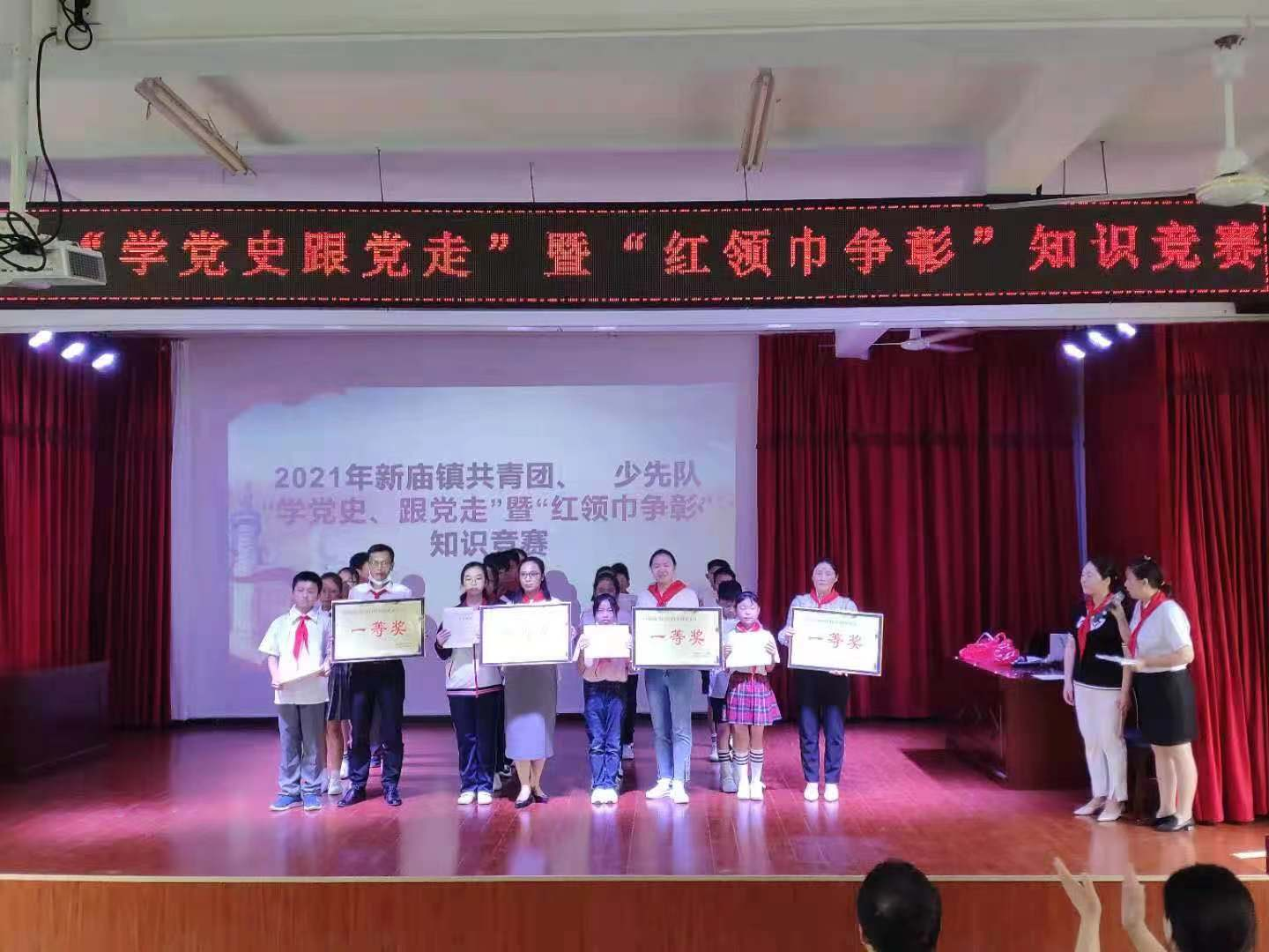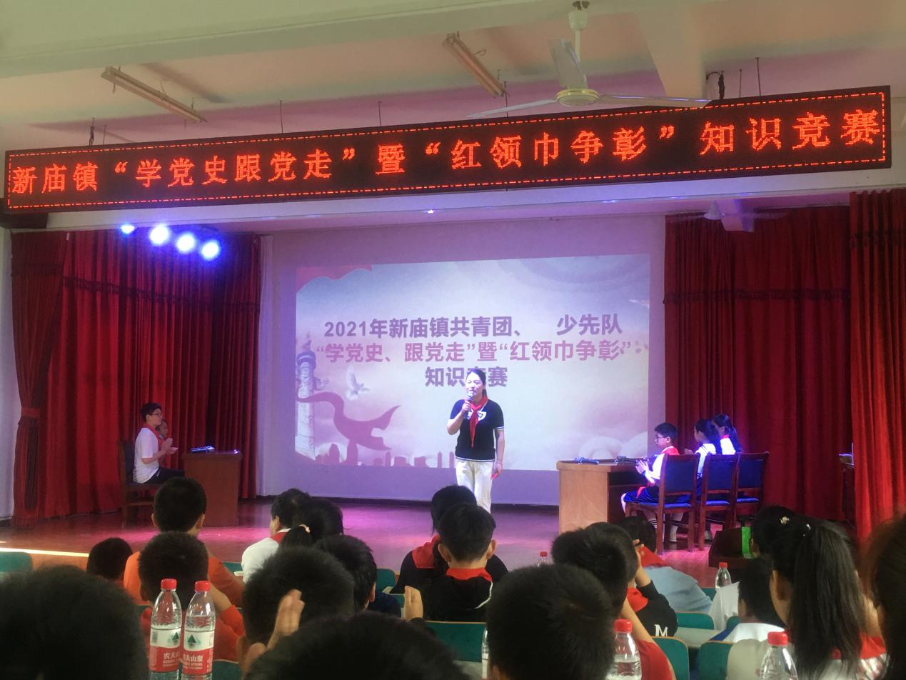 5月28日,临空经济区新庙镇中心学校在映山中学阶梯教室,组织开展了2021年新庙镇共青团、少先队“学党史、跟党走”暨“红领巾争章”知识竞赛活动。