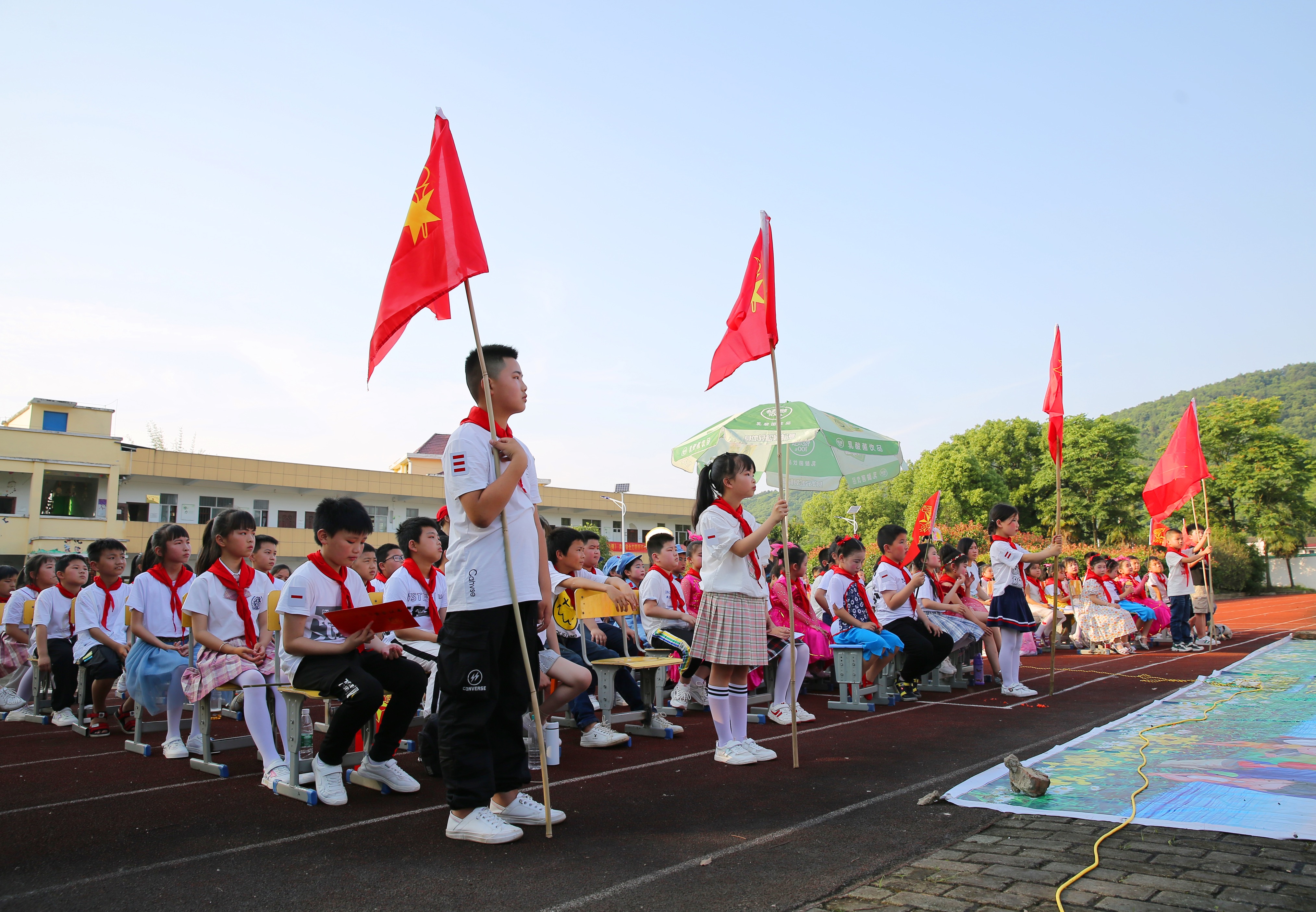 学校全体师生一起庆祝这美好的节日,老师们为孩子们送来了节日的祝福。下午4时,活动准时拉开帷幕,升国旗唱国歌,出队旗,唱队歌,在激昂的乐曲中,鲜艳的五星红旗和队旗迎风飘展。
