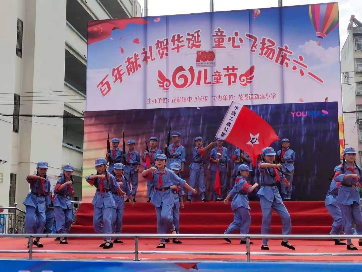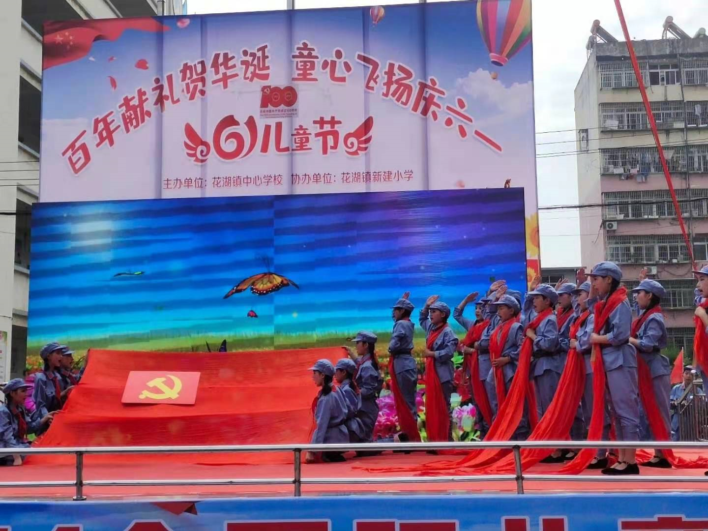 6月1日,花湖镇中心学校在花湖新建小学运动场隆重举行庆“六一”表彰暨文艺汇演。花湖全镇中小学、幼儿园共30个文艺节目进行了同台展示, 全镇约800名少年儿童登台演出。