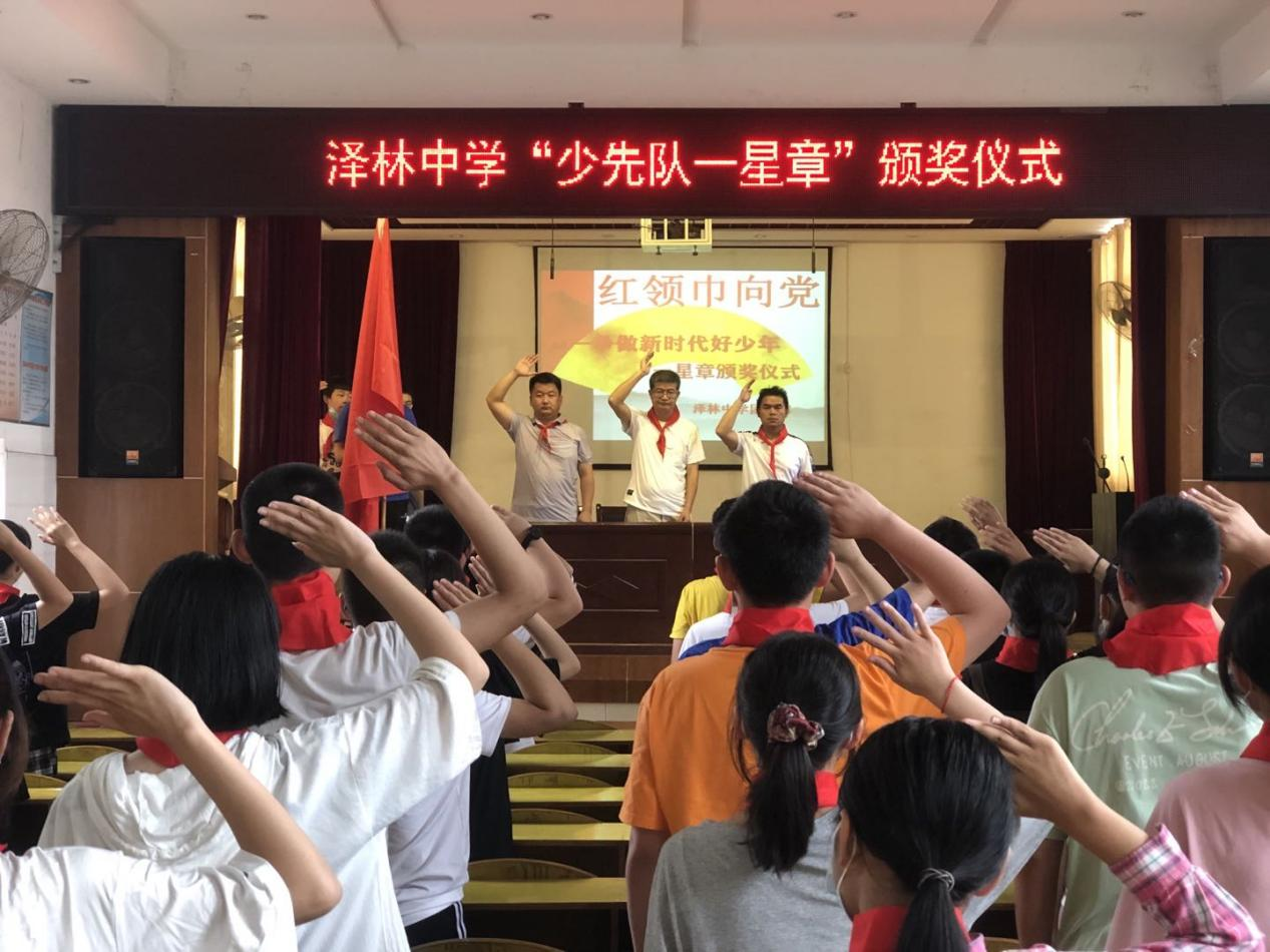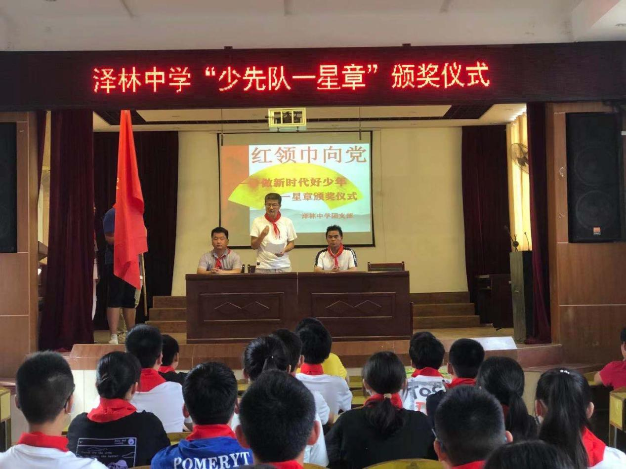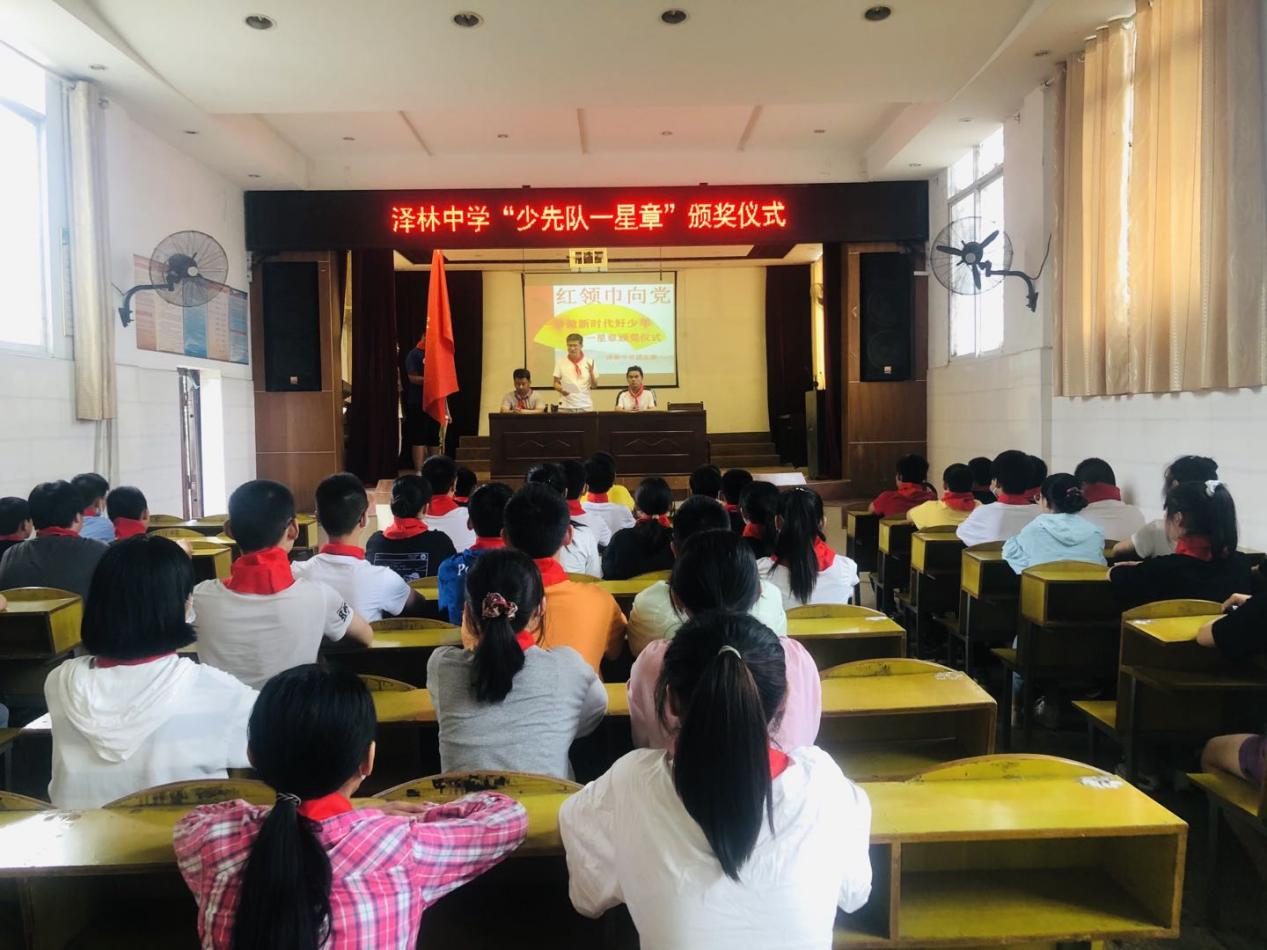 六月,有童年的沃土;六月,有童年的太阳。绵绵细雨依然抵挡不住我们的热情,为构建阶梯式成长激励体系,增强少先队员的光荣感,激励广大少先队员积极的投入争章活动,泽林中学6月10日如火如荼的开展了“红领巾一星章”颁奖仪式。