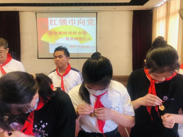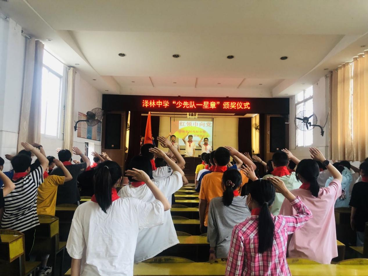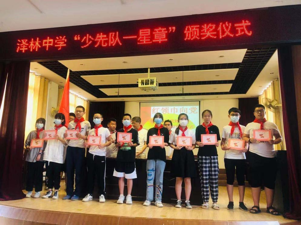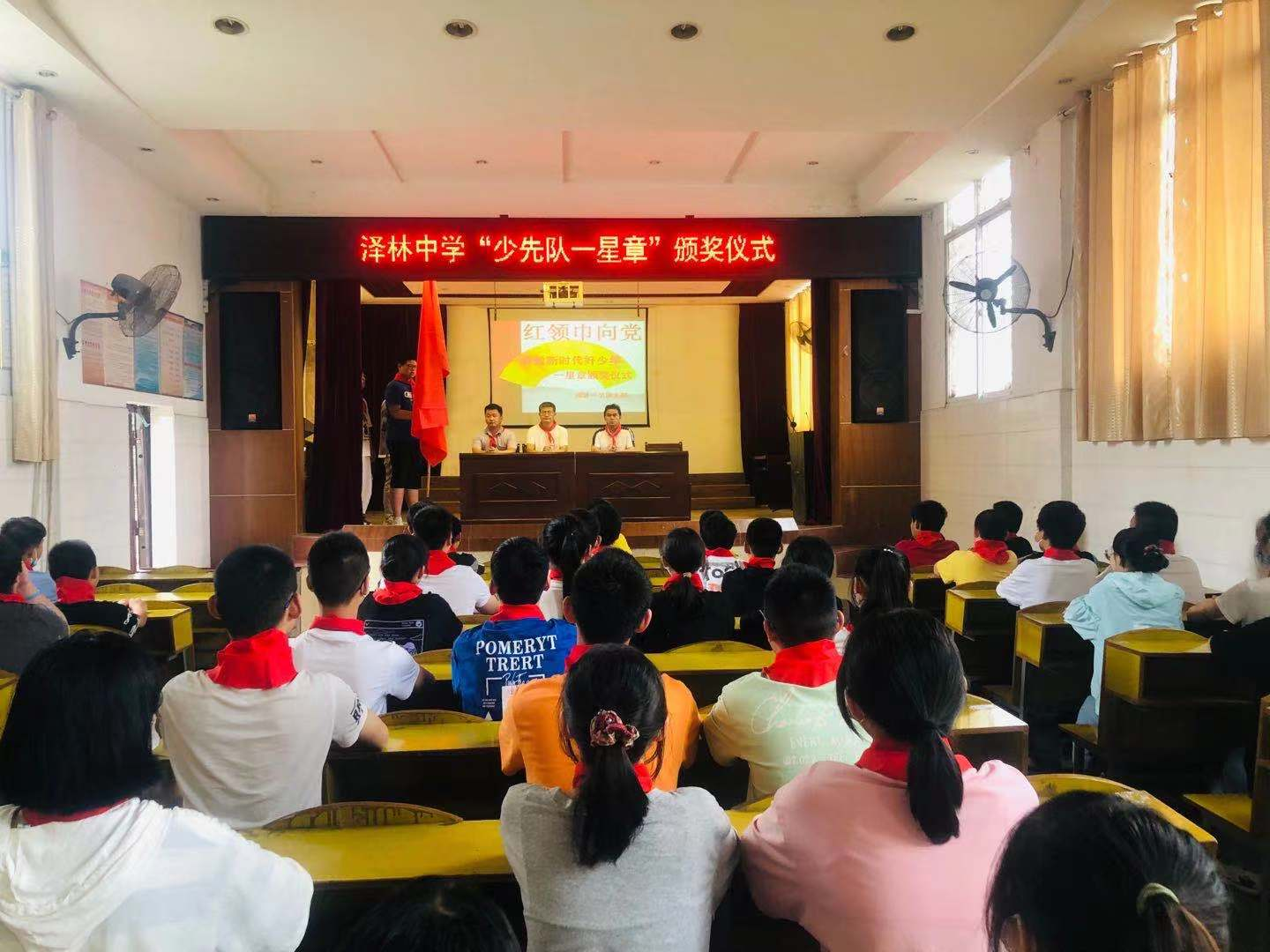 六月,有童年的沃土;六月,有童年的太阳。绵绵细雨依然抵挡不住我们的热情,为构建阶梯式成长激励体系,增强少先队员的光荣感,激励广大少先队员积极的投入争章活动,泽林中学6月10日如火如荼的开展了“红领巾一星章”颁奖仪式。