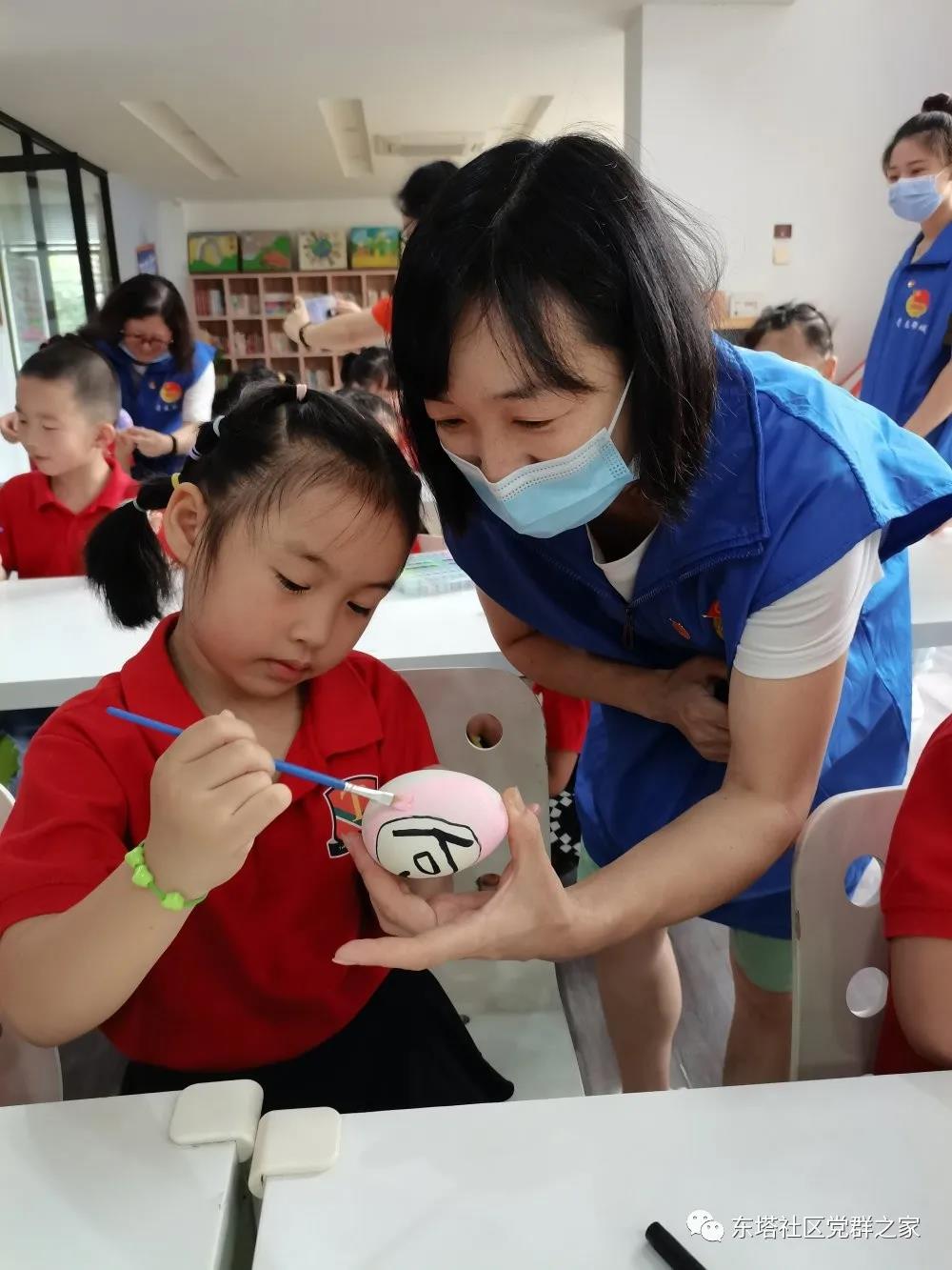 在社区二楼青少年之家,来自启智幼儿园的老师和同学们一起唱起儿歌,绘彩蛋,共同感受中华传统文化的巨大魅力。