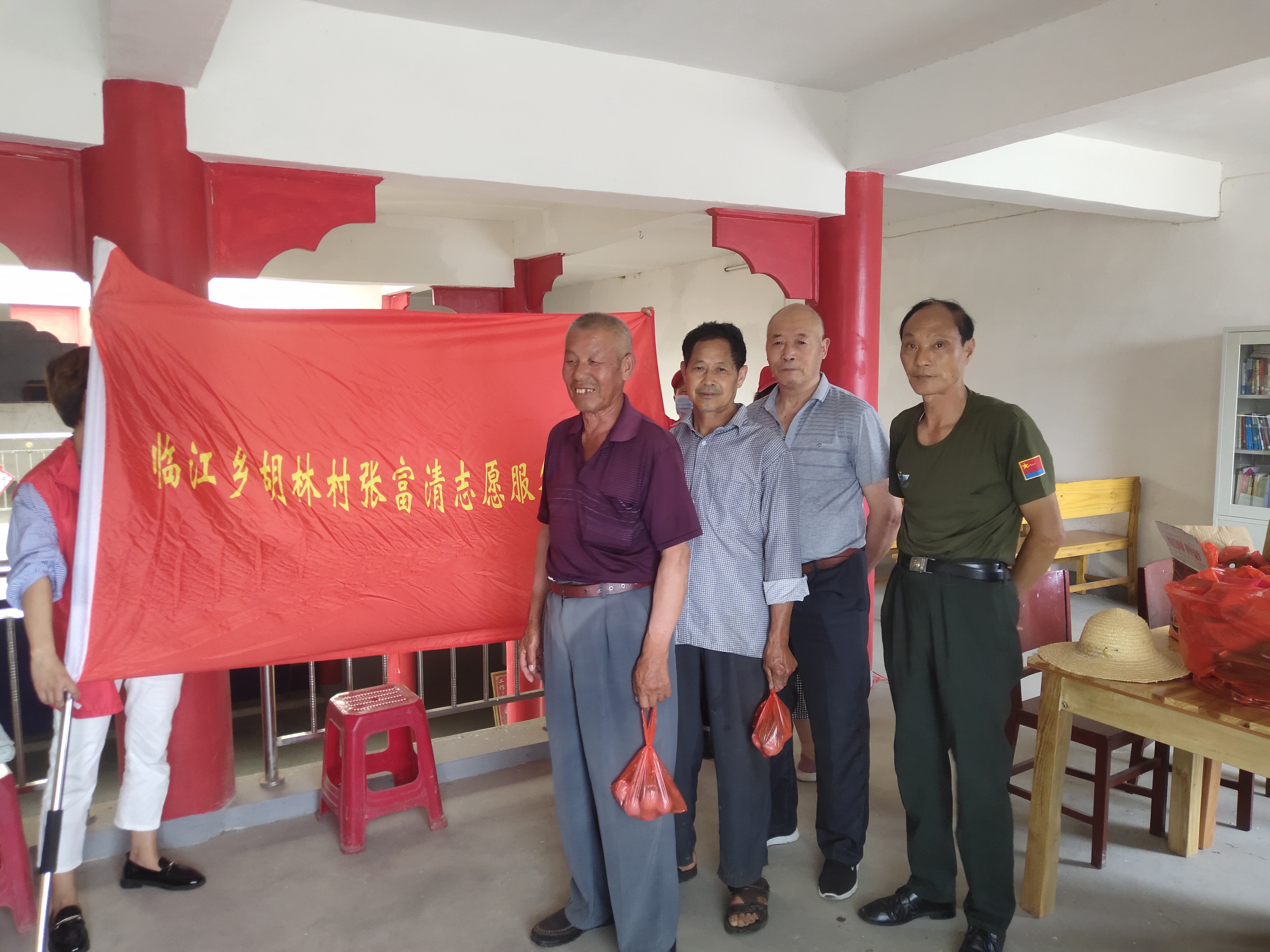 6月11日下午,临江乡胡林村组织在鲁家湾文化活动广场开展“我们的节日?端午”主题活动,张富清志愿服务队志愿者、青年志愿者及退役老军人、困难老人、空巢老人、残疾人等关爱群体共计30人参加。
