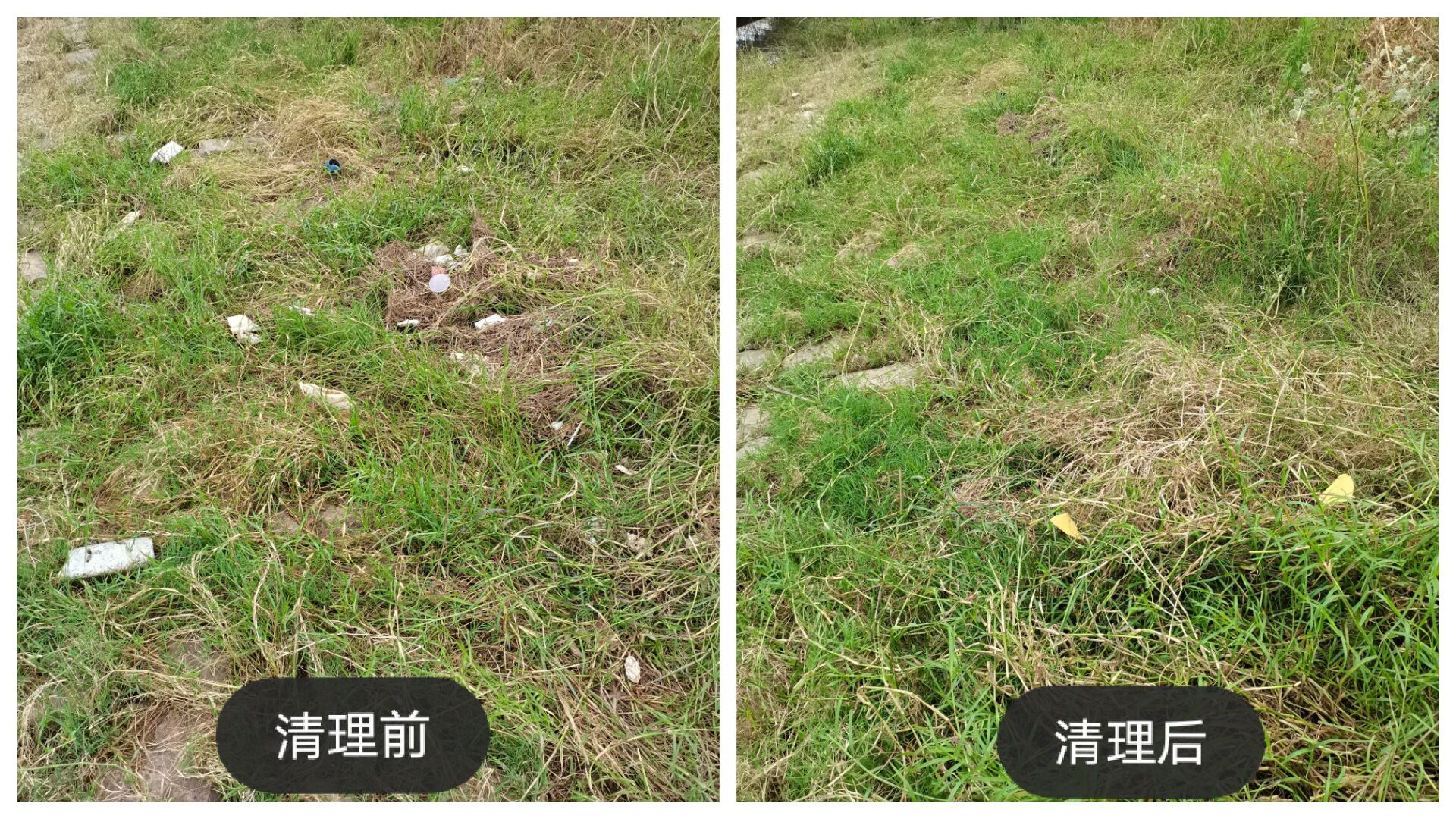通过几个小时的努力,志愿者们收获了满满一袋的成果,临江段江堤沿线垃圾也全部清理干净,还江边一片整洁美丽。