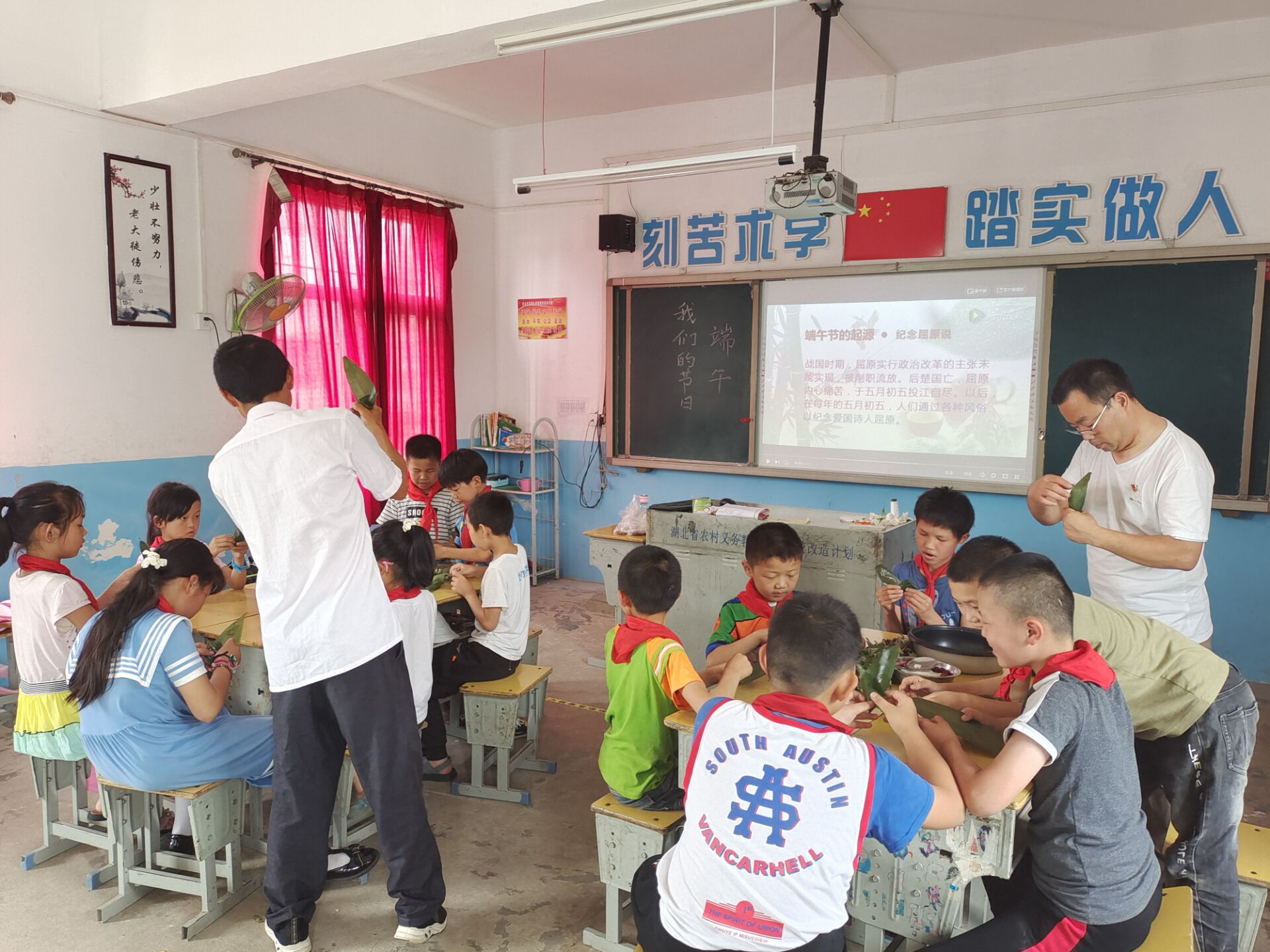 粽子飘香“品”端午。学校组织学生举行包粽子活动,老师们和学生一起浸糯米、洗粽叶、包粽子、吃粽子,体验端午节习俗,体验劳动乐趣。