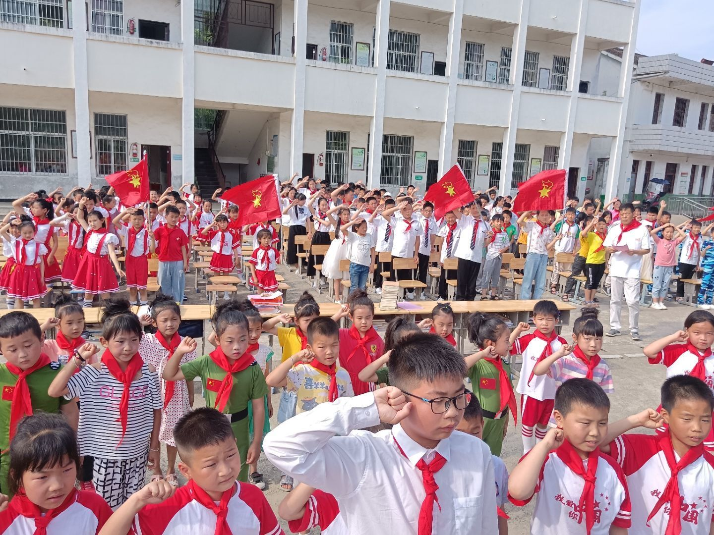 为深入贯彻落实习近平总书记关于少年儿童和少先队工作的重要指示精神,进一步聚焦少先队政治启蒙和价值观塑造主责主业,突出党团队的血脉关系和红色基因传承,恰逢中国共产党建党百年的重要历史节点,2021年5月31日,刘云小学隆重举行“红领巾心向党”2020级新队员入队仪式暨红领巾奖章一星章颁章仪式。