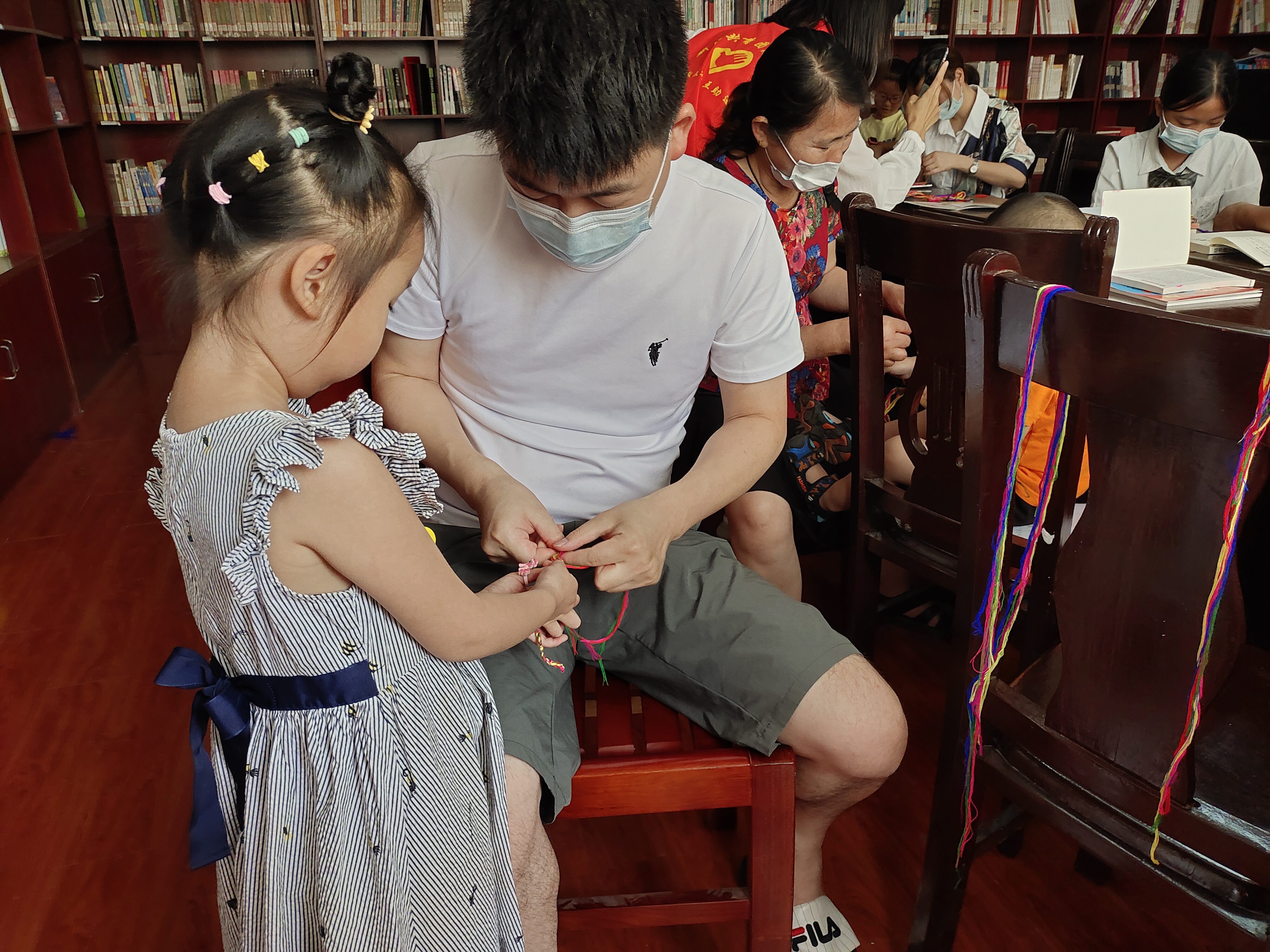 接着,就到了编织五彩绳编的环节,志愿者认真讲解,大家都对手工编织表现出极大兴趣,忍不住要为孩子们认真的小模样点赞。手绳编织好后,大家纷纷带在手上展示。端午节编织五彩绳戴上,有祈福纳吉的美好寓意。小朋友们戴上手绳后,志愿者为大家准备了粽子,粽叶飘香,共同分享传统节日的民俗文化。
