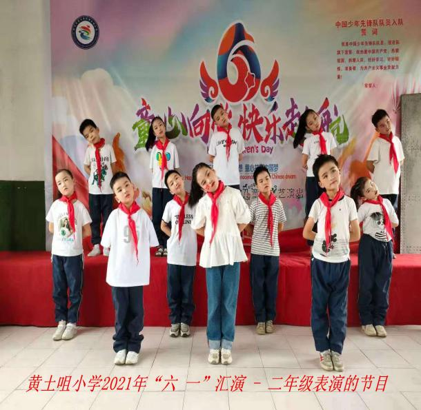 2021年5月28日下午2点,碧石渡镇黄土咀小学在校长的宣布下演出正式开始,全校师生洋溢着喜悦共同齐唱国歌、一年级少先队员入队仪式、新时代好少年颁奖仪式等一一展开。