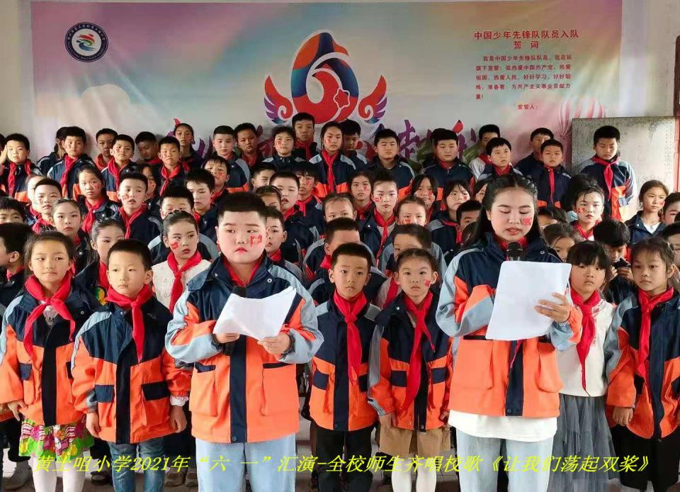 一首首红歌唱出了同学们对祖国的热爱,对党的热爱,同时也预示着祖国的未来会更加繁荣昌盛。让我们荡起双桨,小船儿推开波浪,海面倒映着美丽的白塔,四周环绕着绿树红墙,春风徐来,水波微漾。让我们荡起生活的双桨,畅游在学习的海洋,伴着生活的优美旋律,带着完美的憧憬,驶向更完美的未来!随着小小主持人的播报,全校师生在齐唱校歌《让我们荡起双桨》的欢乐声中黄土咀小学欢庆2021年“六一 童心向党 快乐起航”主题文艺汇演圆满结束。