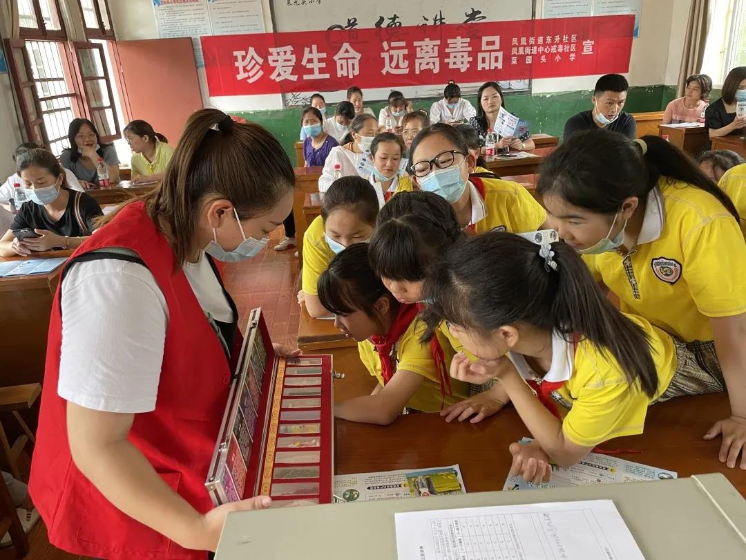 每年的6月26日是国际禁毒日,近年来,毒品吸食、犯罪越来越低龄化,对青少年的毒品预防教育迫在眉睫,为引起校园对毒品问题的重视,号召广大师生家长共同来预防抵御毒品的危害,为祖国的未来撑起防毒拒毒“保护伞”,东升社区围绕“珍爱生命,拒绝毒品”的禁毒主题联合菜园头小学、凤凰街道中心戒毒社区在菜园头小学家长学校组织开展了一场形式多样的禁毒宣传进校园学习活动。