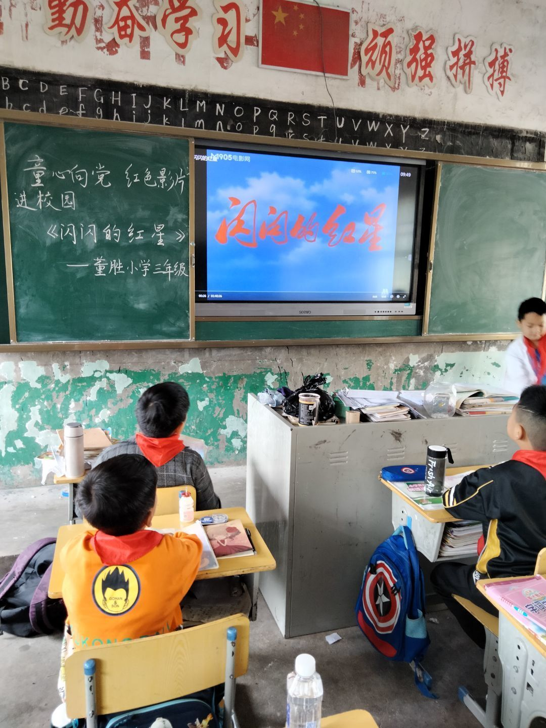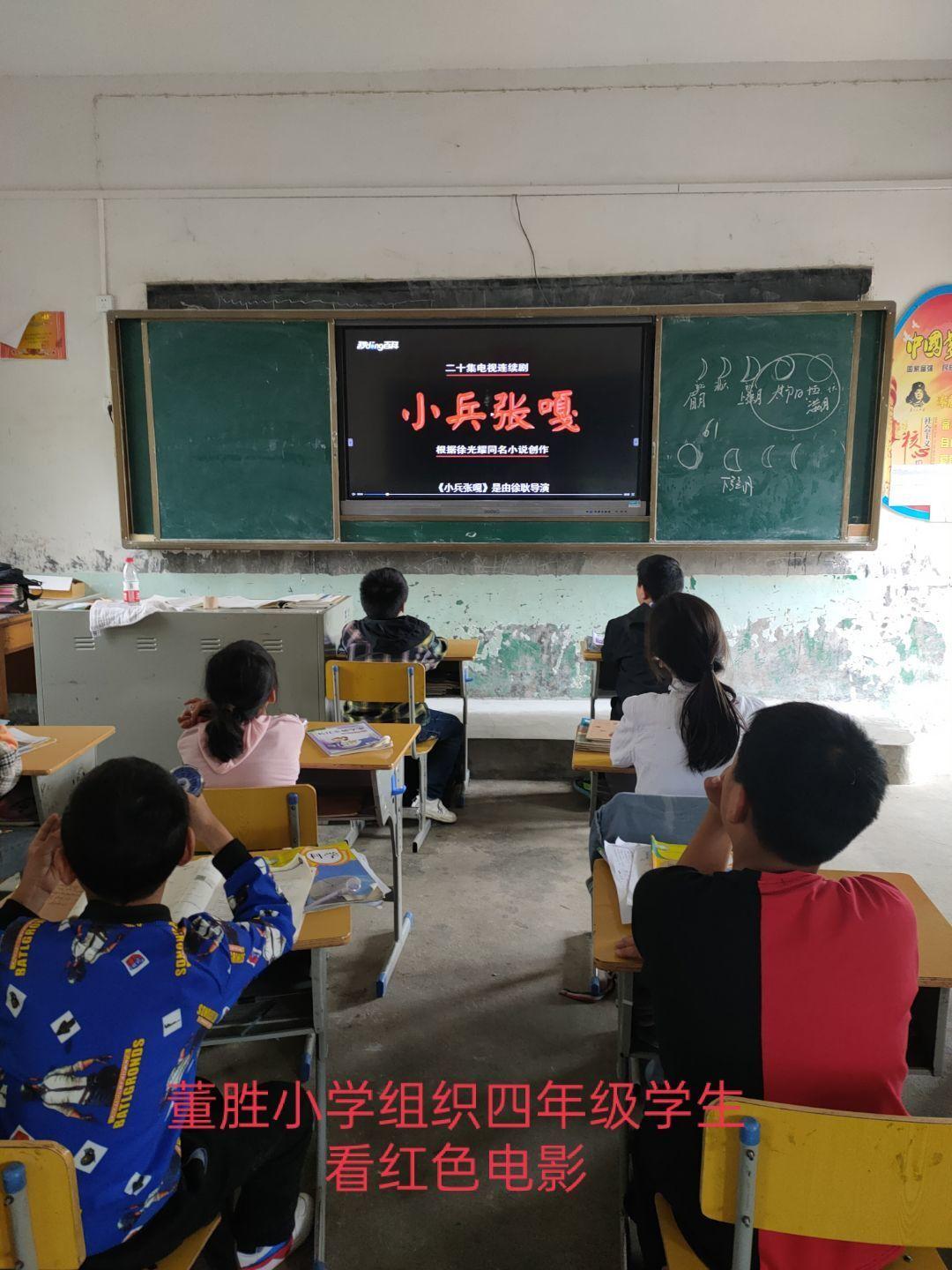 为形象、直观地让少先队员们感受到革命年代共产党人不畏艰辛、不怕牺牲的革命意志和历史责任感,帮助他们树立正确的人生观、世界观和价值观。5月28日下午,董胜小学组织学生观看红色电影《小兵张嘎》、《闪闪红星》。