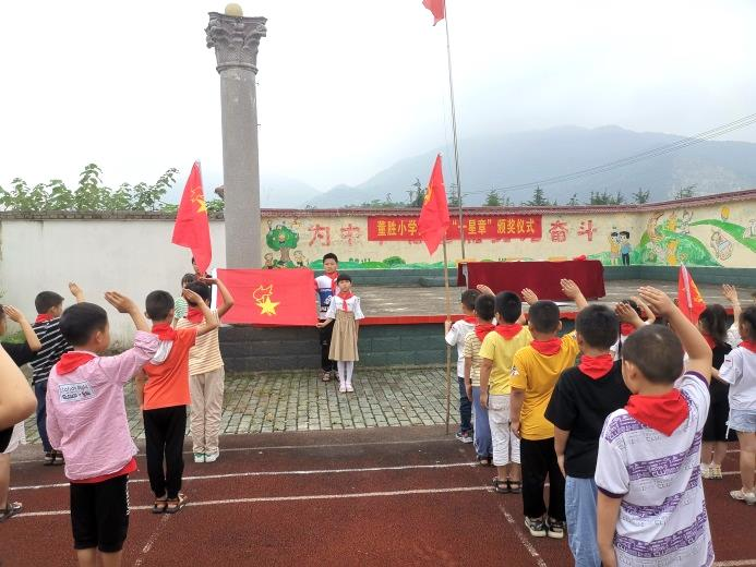 为全面贯彻落实习近平总书记关于少先队工作的重要论述精神,展现董胜小学少先队员朝气蓬勃、积极进取的精神风貌和全面发展的综合素质,让品学兼优的少先队员脱颖而出,同时在学校树立典型,促使全体同学提高思想道德素质,养成良好的行为习惯,形成优良的校风、学风,充分体现董胜小学“立德树人 全面发展”的指导思想,2021年6月21日,董胜小学举行了“红领巾一星章”颁奖仪式。
