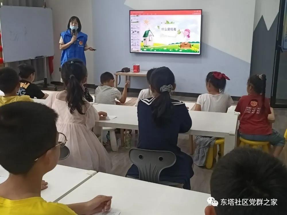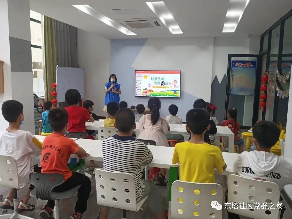 为加强辖区未成年人对法律知识和毒品危害的认识,特别是增强未成年人的自我保护意识和能力,近日,东塔社区组织辖区少年儿童在社区二楼未成年人活动室举办“珍爱生命,远离毒品”禁毒知识教育讲座。