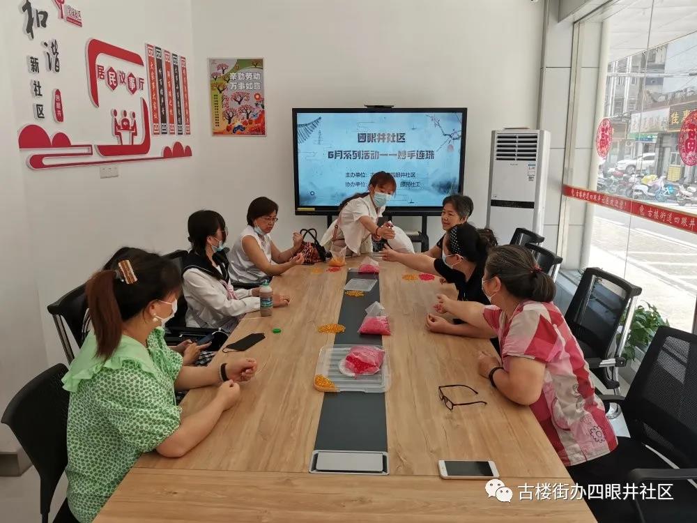 为丰富辖区居民精神的生活,锻炼他们的动手能力,6月15日下午,在古楼街道社工站协助下,社区暖艺志愿服务队,开展六月系列活动之——“妙手连珠”。