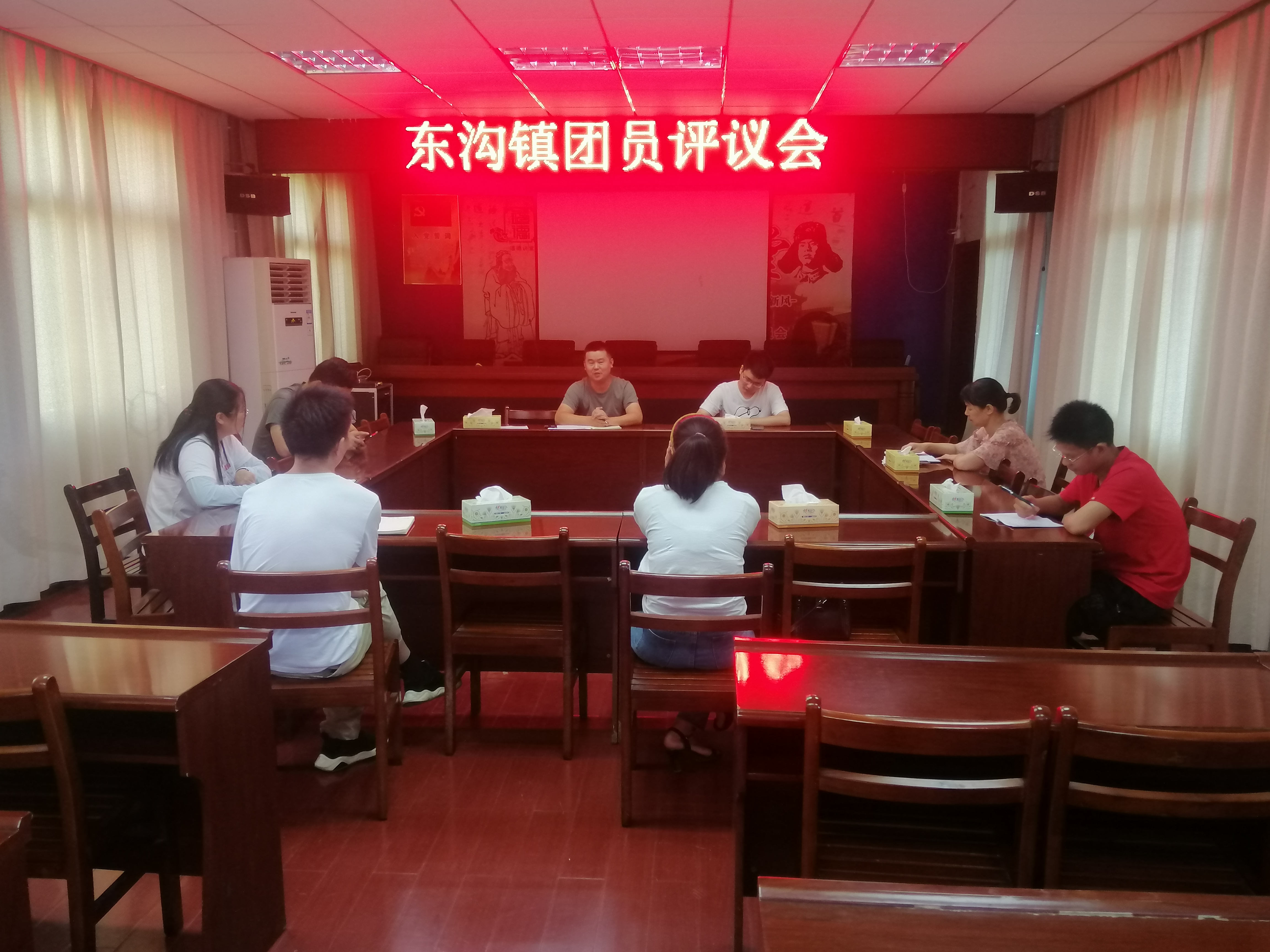 为从严落实团的组织生活,6月23日,东沟镇镇直机关团支部在政府4楼召开支部团员评议会,镇机关团支部团委、各村团支部书记共8人参加了此次评议会。