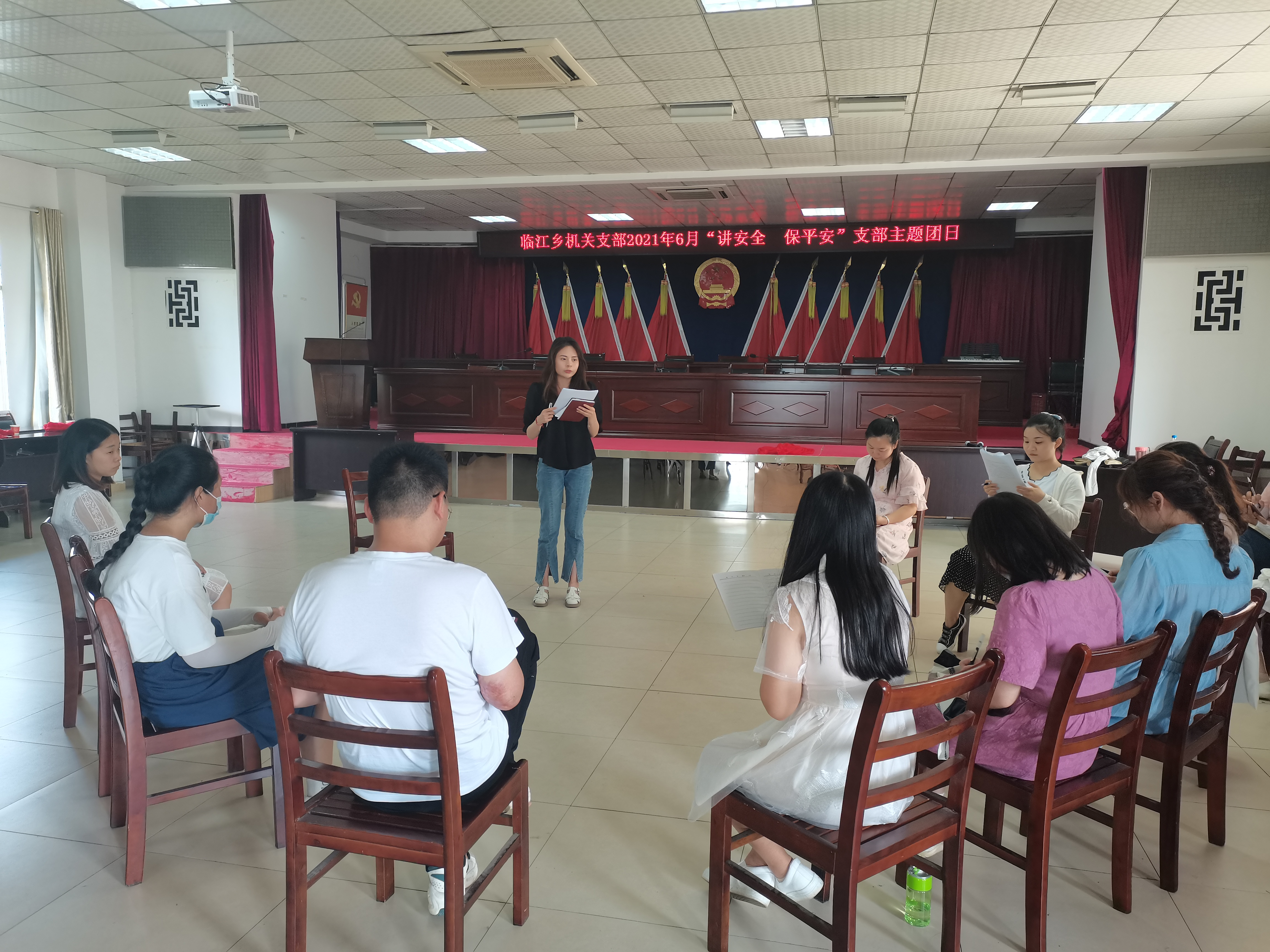 2021年6月是第二十个全国安全生产月,为了让安全生产、消防安全知识深入人心,提高乡团干的安全防范意识和技能,充分发挥青年保安全先锋作用。6月24日下午3:00,临江乡团委在临江乡政府一号会议室开展“讲安全 保平安”主题团日活动暨6月份工作例会。乡团委全体人员、机关支部团员、各村团支部书记参加会议。