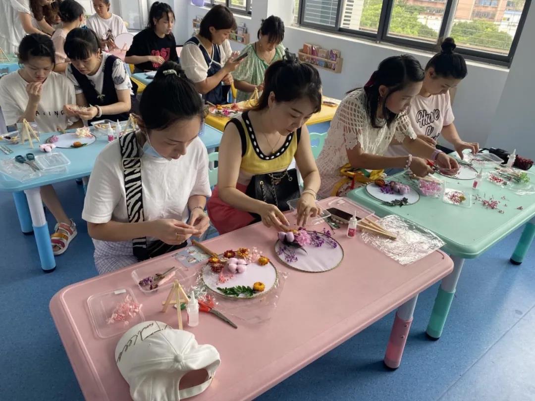 经过老师的详细讲解后,学员们迫不及待的动起手来,随着大家的巧手翻飞,把原本普通的干花,经过修剪、层次搭配、点缀等步骤,变成了色彩斑斓、干花蒲扇作品。大家看着自己的作品,脸上都洋溢着喜悦的笑容,艺术感满分的学员们也进行自己的创意搭配,同样也别样有致。制作完成后,同学们开始与自己的作品合影留恋,同时也互相欣赏彼此的作品。