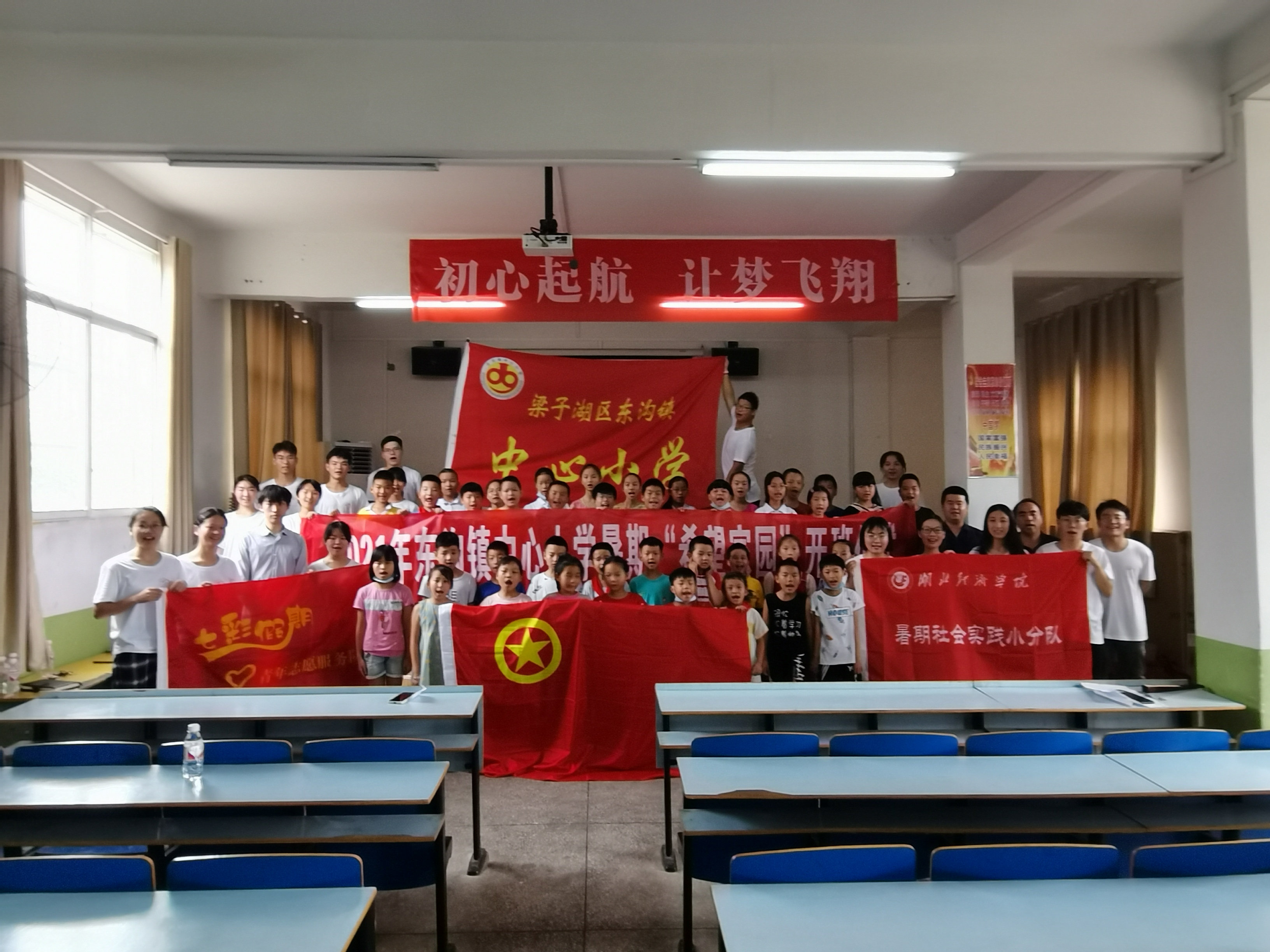 2021年7月16日,湖北经济学院工商管理学院d001初心支教小分队于湖北省鄂州市梁子湖区东沟镇中心小学迎来开班启动仪式。莅临本次开班仪式的领导有湖北经济学院工商管理学院团委书记贺锴欣,湖北省鄂州市梁子湖区东沟镇团委书记张学锋,湖北省鄂州市梁子湖区东沟镇中心学校校长刘志华,湖北省鄂州市梁子湖区东沟镇中心小学校长黄红兵。