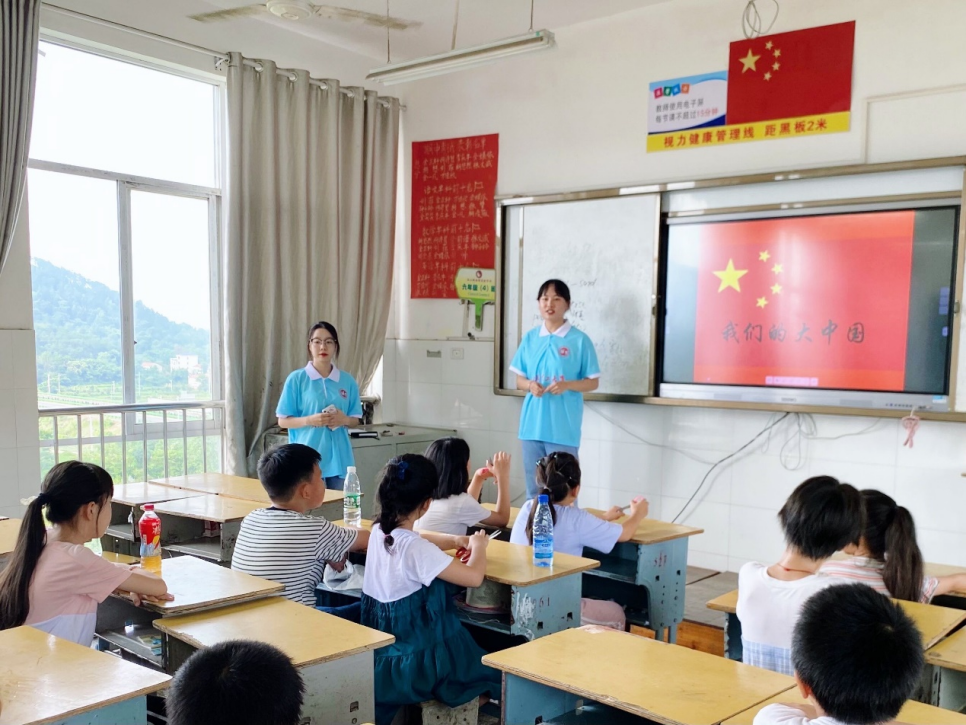 7月16日,武汉理工大学外国语学院支教团队来到鄂州市梁子湖区沼山镇,开展为期一周的“七彩假期”暑期支教---“带你看世界”系列课堂活动。