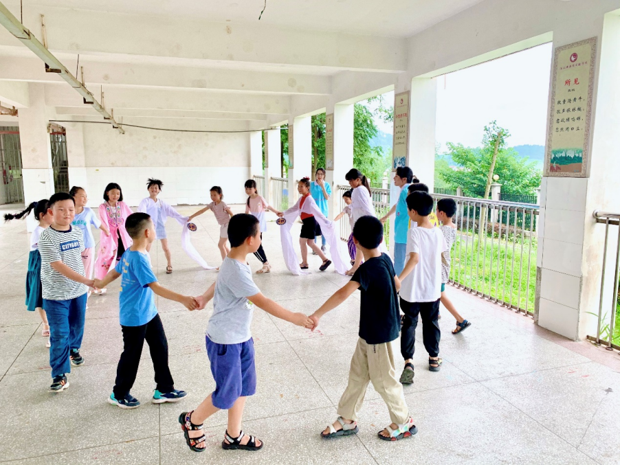 在户外活动中,抢凳子等小游戏也让小朋友们与支教队伍建立了更和谐的友谊关系,课堂气氛空前活跃。
