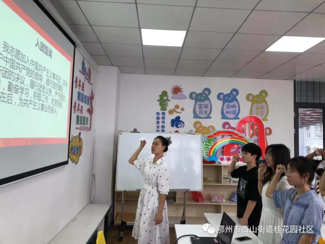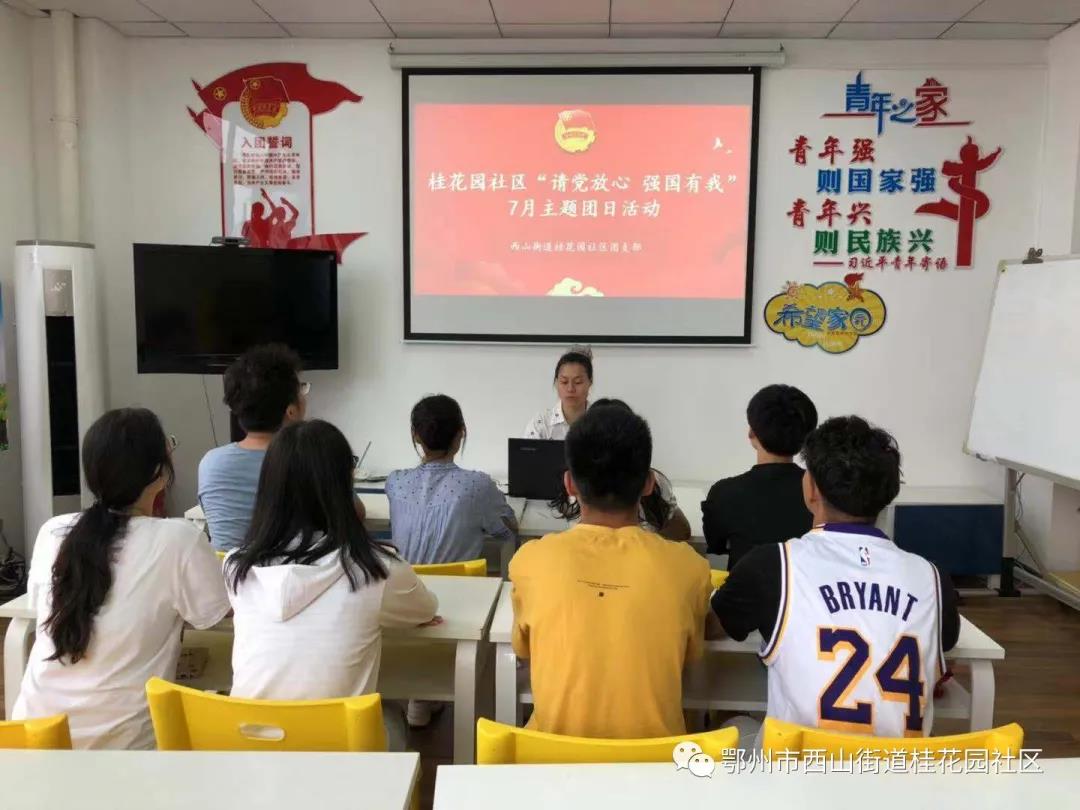 7月19日上午,为加强辖区内青年团员精神文明建设,培养青年团员爱国情怀,桂花园社区开展“请党放心 强国有我”7月主题团日活动,桂花园社区邀请辖区优秀青年团员参加了本次活动。