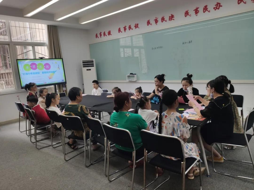 开班仪式结束后,孩子们迎来了在“希望家园”的第一堂课——手工课。大家围坐在一起,各色的彩纸在小朋友的手中飞舞。加强了孩子们的动手能力和创造力,也增强了课堂的趣味性。