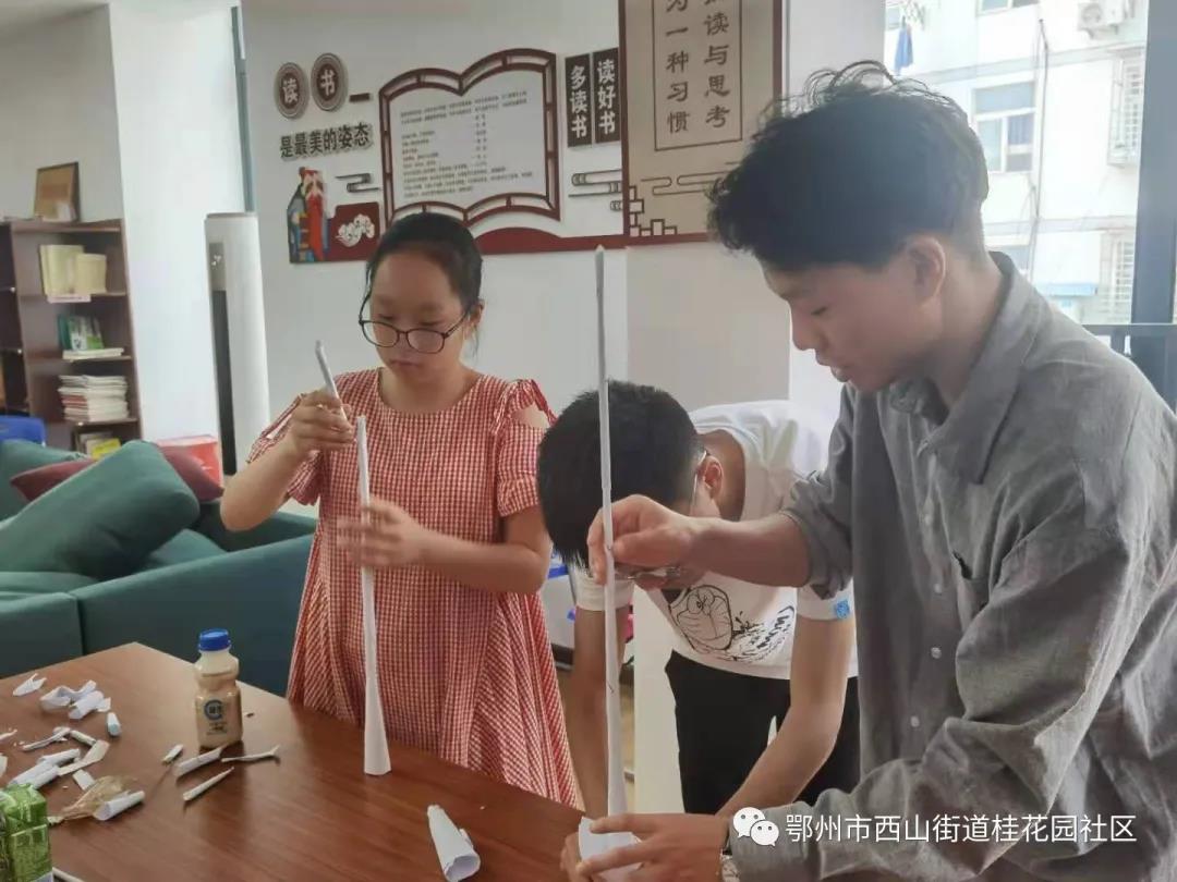 7月20日下午,为践行习总书记“为创新者强”的指示,桂花园社区联合南京航空航天大学志愿者开展了“巧建纸塔”创新实践活动。