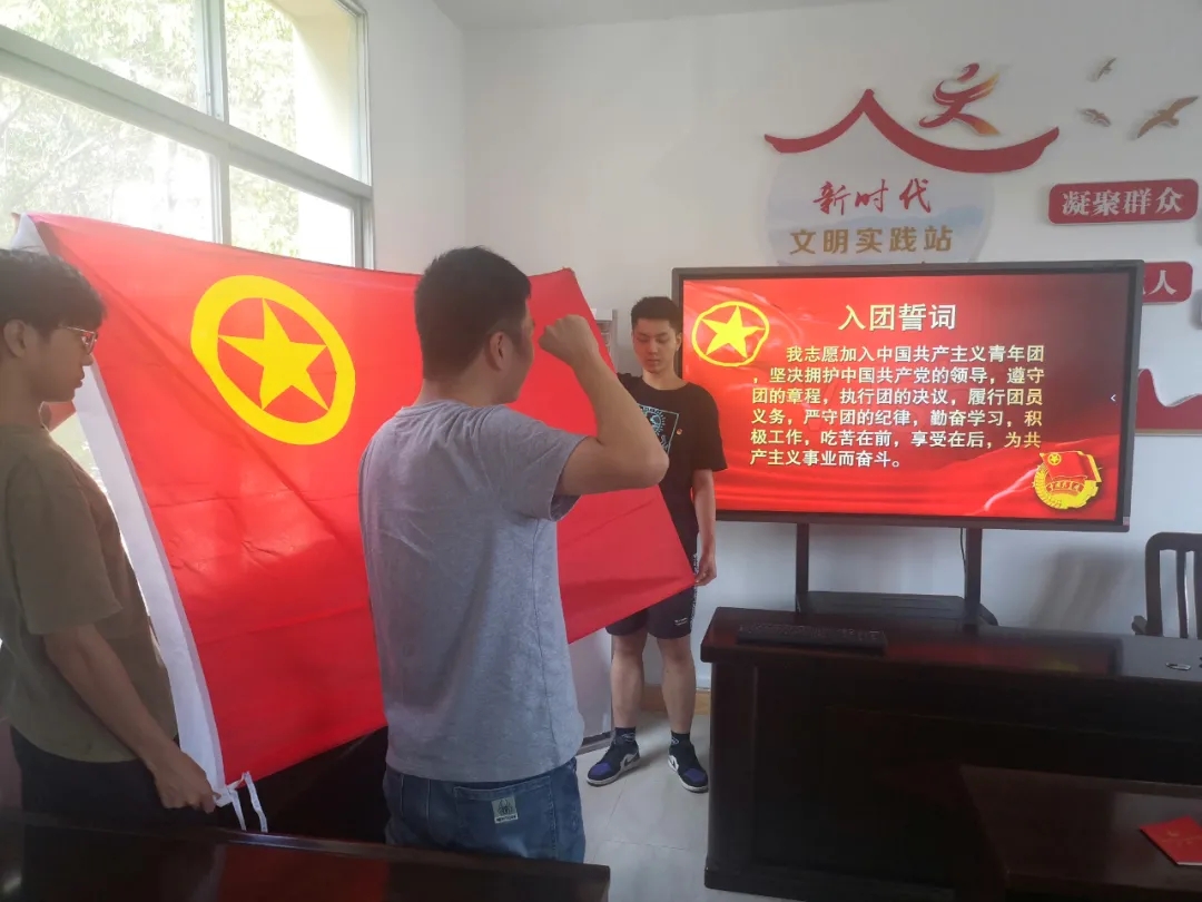随后,团员代表柳剑带领大家重温入团誓词,与会团员眼神坚定,佩戴团徽,高举右拳,宣读入团誓词,“我志愿加入中国共产主义青年团,坚决拥护中国共产党的领导,遵守团的章程......”庄严而神圣,自信而坚定。