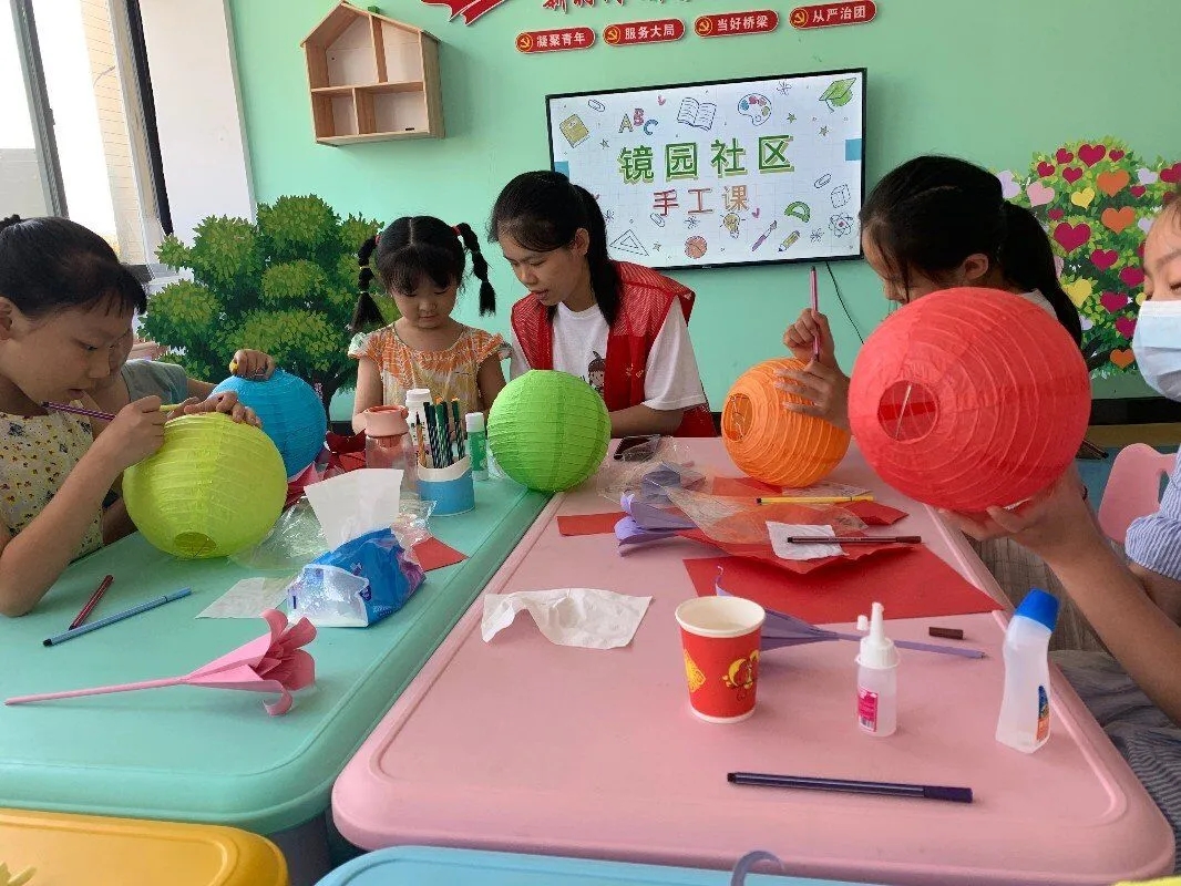 花朵完成啦!镜园社区志愿者小姐姐拿出准备好的灯笼和画笔,让小朋友们在灯笼上写上自己的心愿和以后想成为什么样的人。有的小朋友写到“我想成为警察叔叔这样的人”,有的小朋友写到“我想成为舞蹈家”,小孩子的世界丰富多彩,他们用稚嫩的心温暖着世界,同样我们也希望用我们的爱滋养他们。