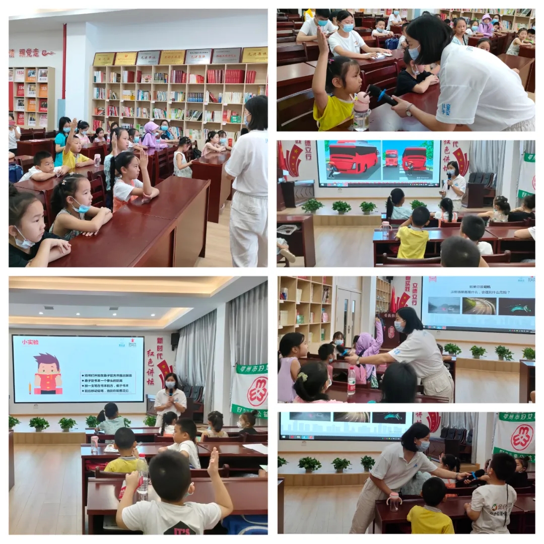 同时结合视野盲区小实验、安全头盔小实验,强调系好安全带和佩戴安全头盔的重要性,让孩子们明白并且认识到在步行时随意横穿马路、攀扶其他车辆、扶手并行、互相追逐打闹、曲折行驶等行为的危害性。小朋友们听得十分专注,津津有味,举手回答更是积极。