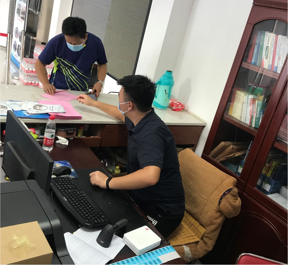 青马班学员彭代阳、汤昕宇在进行核酸检测登记工作