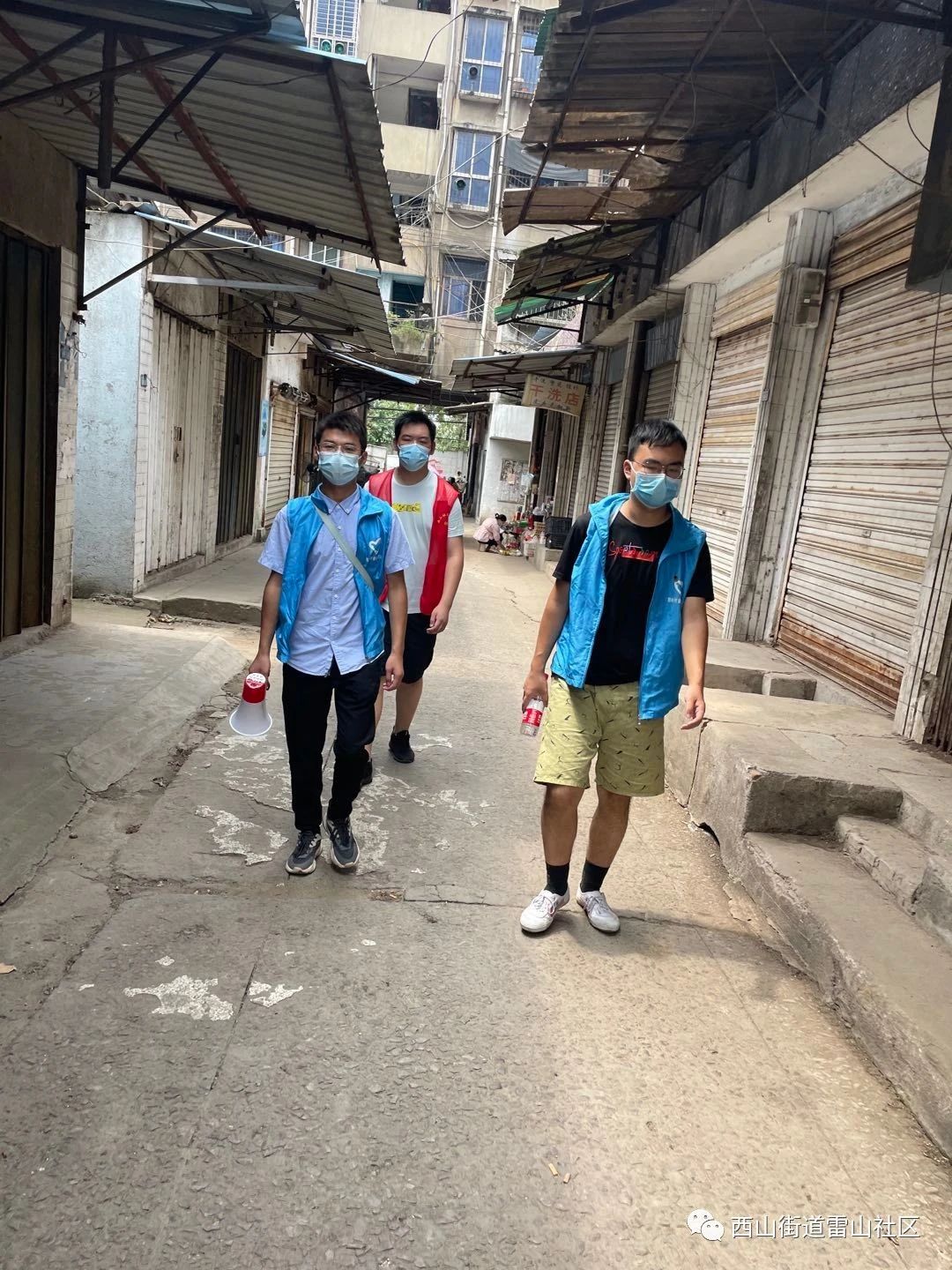 “现在是疫情防控关键时期,请广大居民注意个人卫生,戴口罩,多通风,少外出……”红色扩音器传来的嘹亮声音穿过空气中的热浪来到雷山社区每一户居民家中。