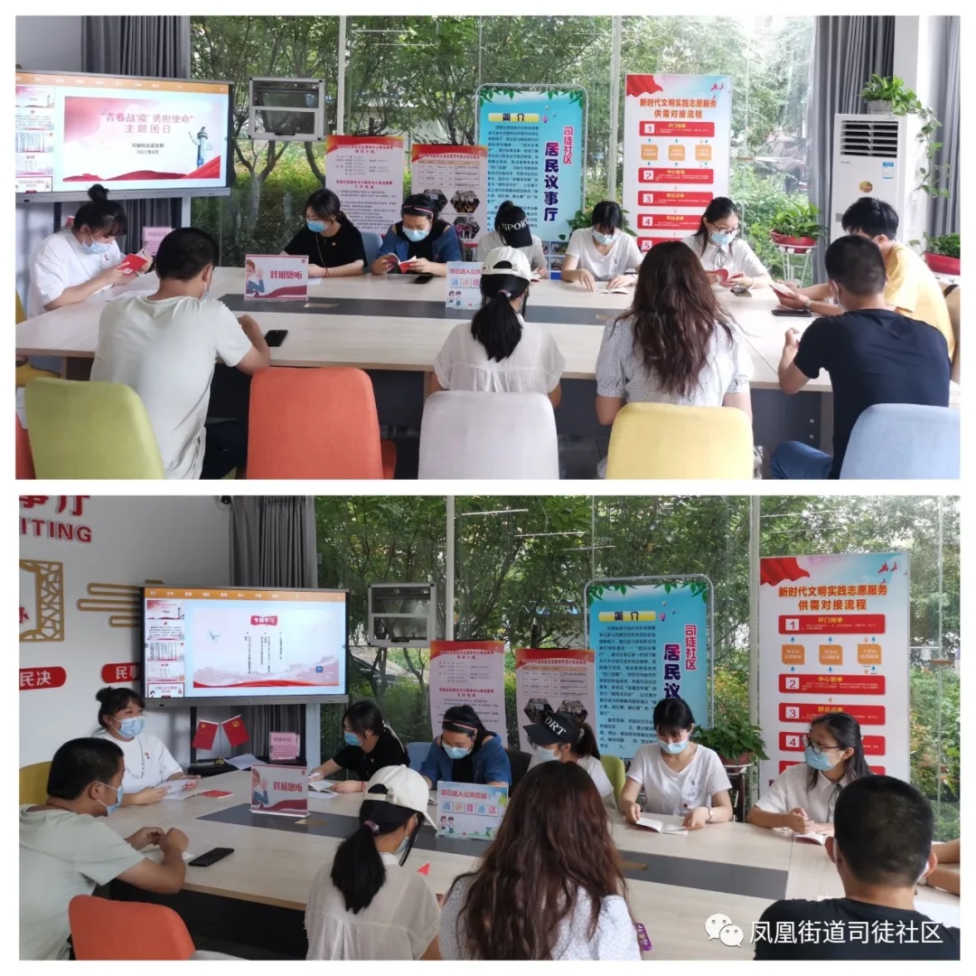 为深入贯彻习近平总书记“七一”重要讲话精神和考察西藏重要讲话精神,激励广大团员青年争做有理想、有本领、有担当的好青年,2021年8月30日下午,凤凰街道司徒社区团支部组织十余名社区团员、“青春蓝”志愿者在一楼会议室开展“青春战疫 勇担使命”主题团日活动。