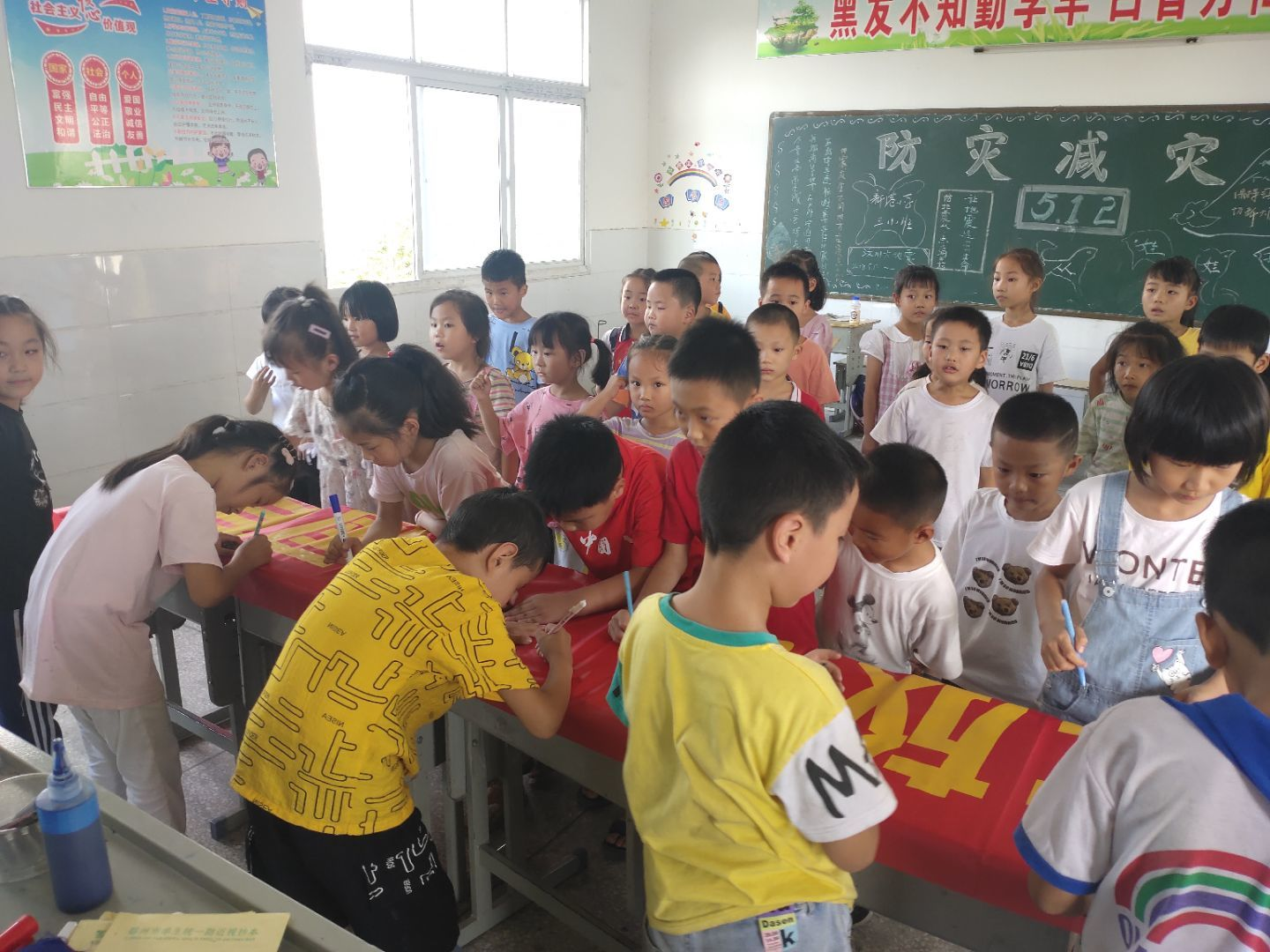 少先队员熊晟宇作为代表发言,表示要时刻牢记没有共产党就没有新中国,努力学习,为中华民族伟大复兴奋斗终生 。最后全体师生共同宣誓,并在横幅上庄重地写上自己的名字。