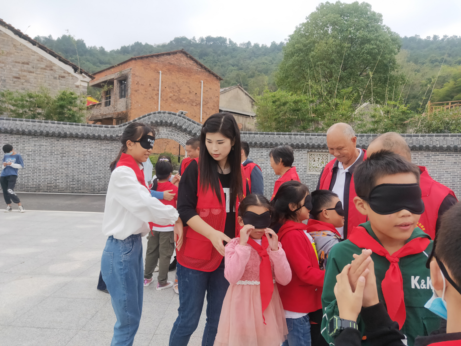 “我们是共产主义接班人……”在车子里孩子们响亮的歌声中,我们开启了一天愉快的旅程。志愿者们先后带着孩子们来到上洪村、陈太村以及万秀村等乡村振兴点。志愿者们先通过大脑蹲、马兰花开等游戏打开气氛。随后带着孩子们和邻居型志愿者玩起了摸瞎子、两人三足等户外游戏。摸瞎子环节,志愿者们因为平时和孩子们交流比较多,很容易就将自己结对的孩子很轻松地找了出来。两人三足游戏环节,孩子和志愿者们从刚开始两个人不知道如何迈步子,到后面两个人就像自己一个人在走路。分享环节,孩子们和志愿者纷纷感慨,在学习和生活中,细心观察、同心协力以及沟通交流的重要性。