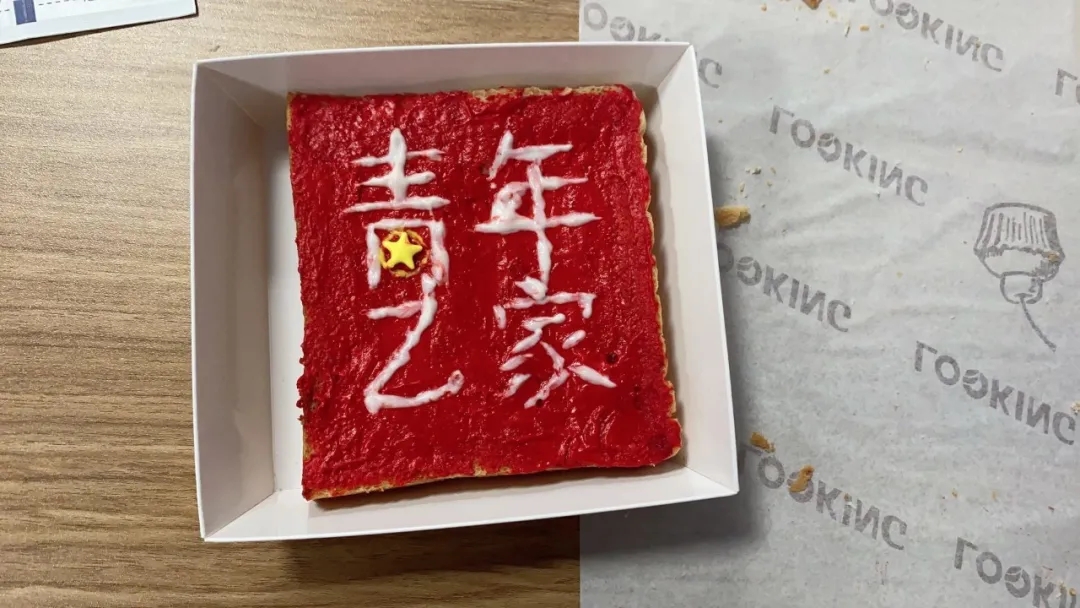 看,有一位青年绘出了一幅特别的吐司“青年之家”会标,是不是特别有创意。