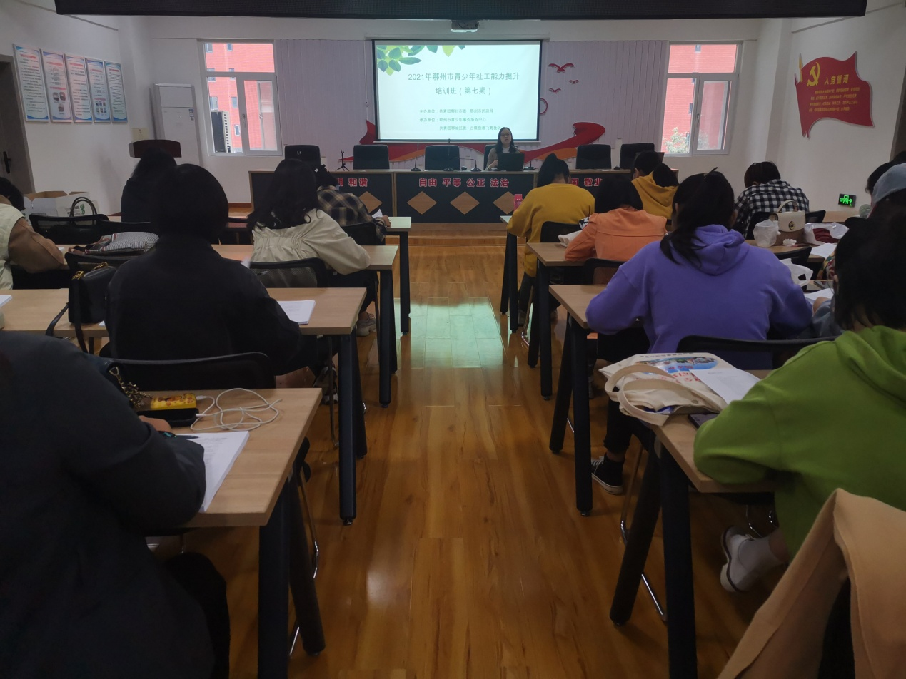10月11日和12日,由团市委、市民政局主办,市青少年事务服务中心、共青团鄂城区委、古楼街道飞鹅社区联合承办的2021年鄂州市青少年社工能力提升第7期和第8期培训在飞鹅社区举行,33个社区的60余名优秀社区工作者骨干参加培训。