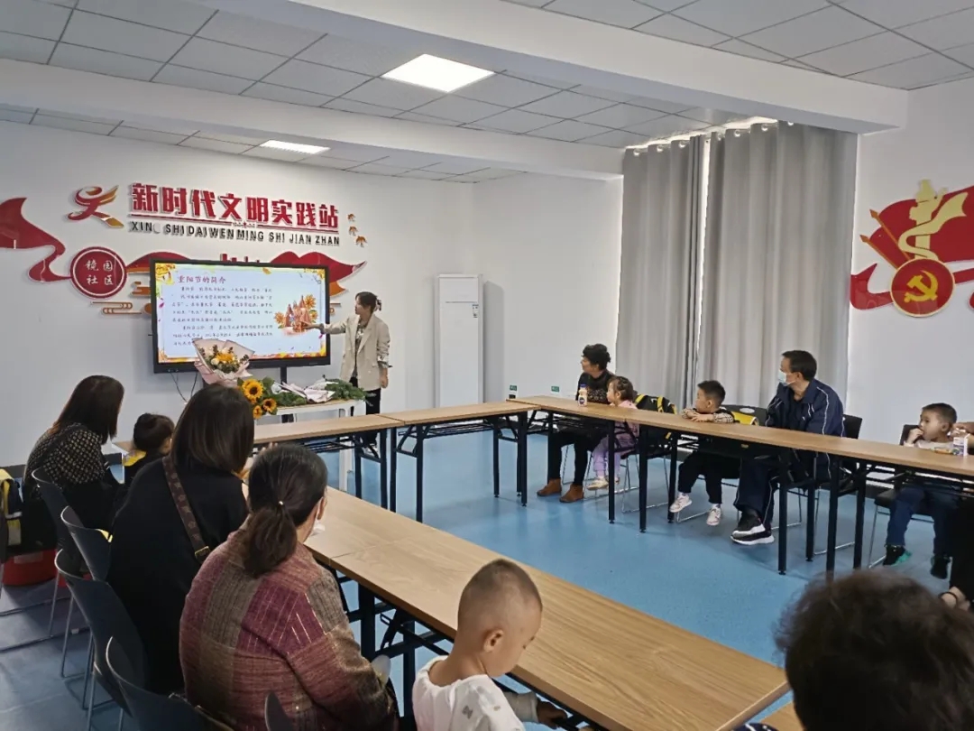 活动开始,主持人首先向孩子们介绍重阳节的起源及习俗,让孩子们和家长了解重阳节的由来和习俗。