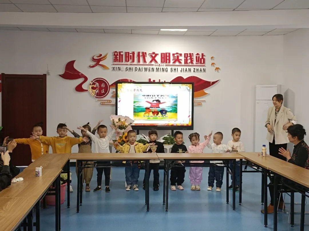 在老师的带领下,孩子们纷纷上台表演重阳手指舞,表达自己对爷爷奶奶的爱。