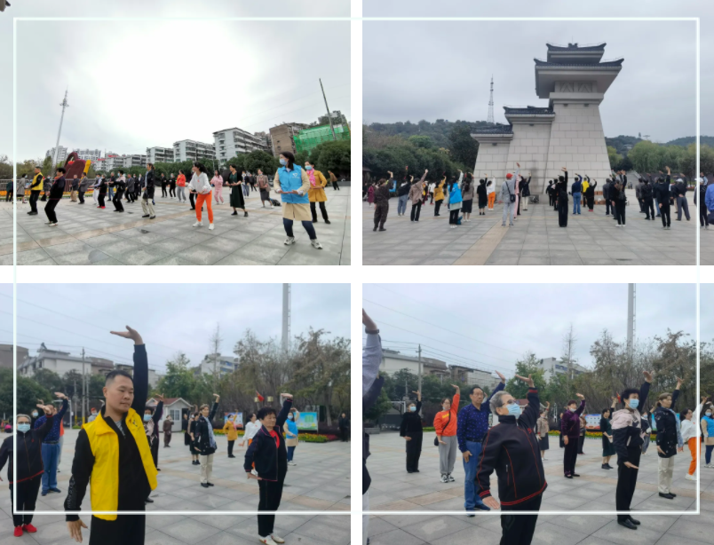 上午8时许,老党员们在西山公园广场集结,在悠扬的音乐声中,济甘堂中医文化传播社的吴老师带领大家展示了八段锦的健身功法,他们动作刚柔相济,行动整齐划一,展现出健身气功带给人们积极向上的精神面貌。八段锦结束后大家精神抖擞,身体得到了放松和舒展,便开始了开始今天的登山之旅。