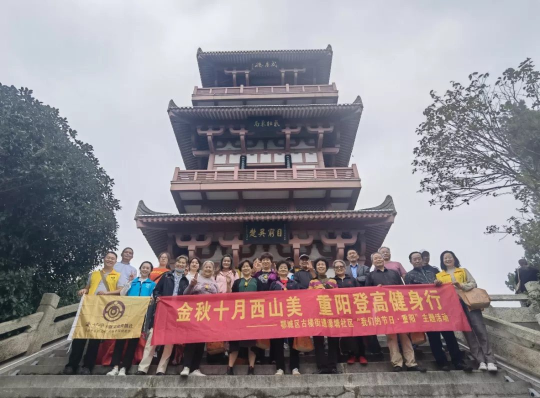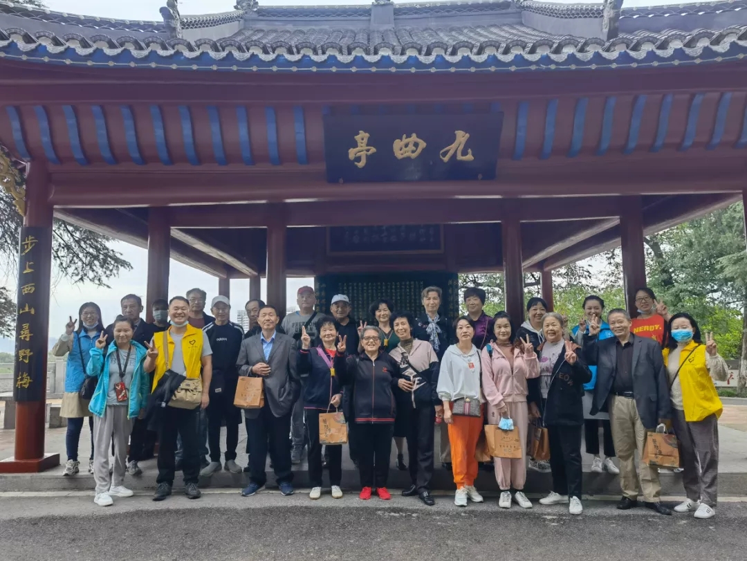 九曲亭是我们的西山之旅第一站,相传此亭始建于三国时期,毁于烽火,直到北宋苏轼修缮扩建,其弟苏辙题“九曲亭记”以为记。大家在九曲亭稍作休整,在濠塘社区社工的带领下,大家围绕“百善孝为先,重阳话家风”“健康重阳”等话题进行了心得分享。交谈到兴致处,有党员还带头唱起了红歌,歌声飘扬,大家继续拾级而上,继续朝着山顶出发……