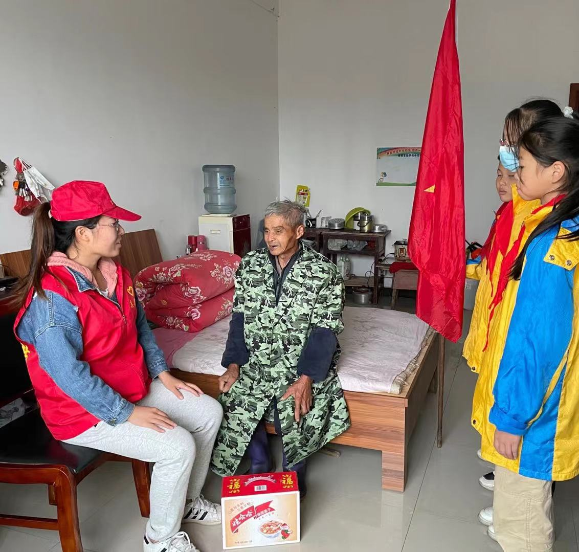 蒙蒙细雨也阻挡不了学生们的热情,队伍首先来到了学校后勤余师傅的住处,给他带去了节日的问候和精彩的表演。随后,他们去到了王铺街上两位老人家里,为老人们送去了慰问小礼物,他们热情地与老人交谈,积极主动地帮助老人整理内务,按摩肩膀,顿时屋子里暖意融融,掌声、欢笑声此起彼伏,在场的人无不感受到轻松愉悦!
