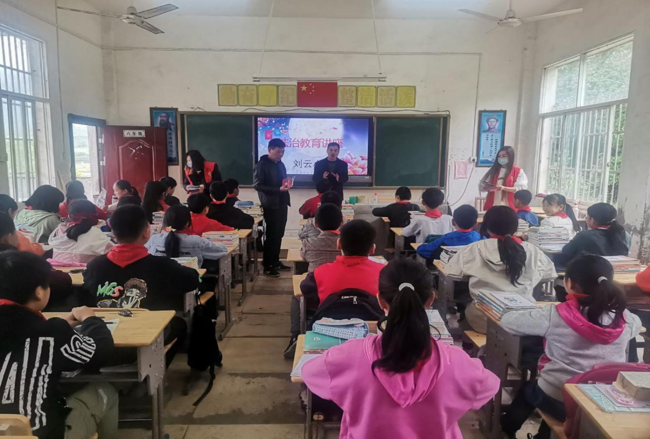 10月11日汀祖镇司法所志愿者向学生发放普法宣传资料。