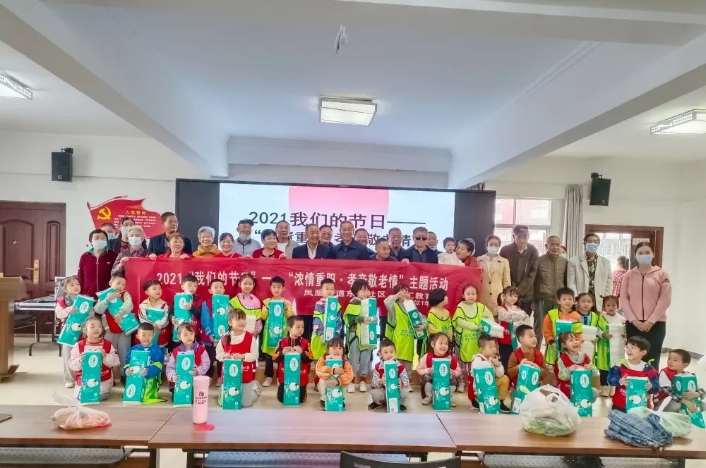 又是一年重阳到,为弘扬中华民族尊老、爱老、助老的传统美德,丰富老年人的娱乐生活。2021年10月14日,凤凰街道东升社区联合辖区知汇教育在社区二楼会议室,开展“浓情重阳·孝亲敬老情”之“与爷爷奶奶一起过重阳”为主题的重阳节文化活动,让辖区老年人感受祥和、欢乐的重阳节。此次重阳节活动共有40多名老人参加,大家一起共同欢度佳节,虽然很多老人都年事已高,但参加的热情程度一点也不输年轻人。