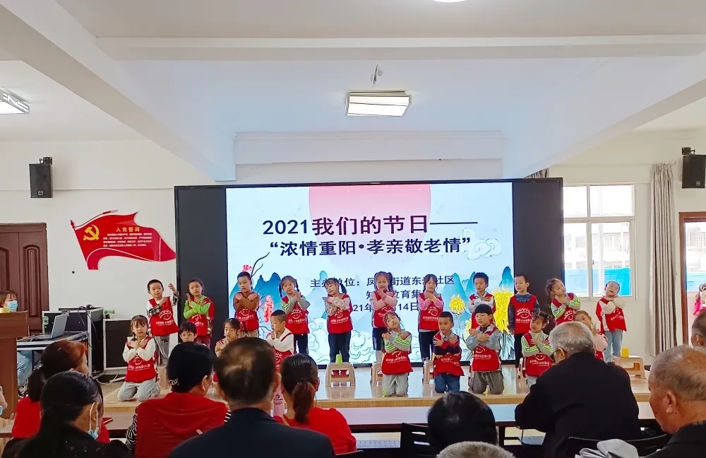 活动开始,由东升社区知汇教育国际班的小可爱们带来的《孝老爱亲》《孝心到永远》等精彩节目,主持人首先向孩子们介绍重阳节的起源及习俗,让孩子们和家长了解重阳节的由来和习俗。随后,在老师的带领下,孩子们纷纷上台表演重阳手指舞,表达自己对爷爷奶奶的爱。一声声深情的朗诵激荡着我们的心房,一支支优美的乐曲奏响了快乐的乐章。