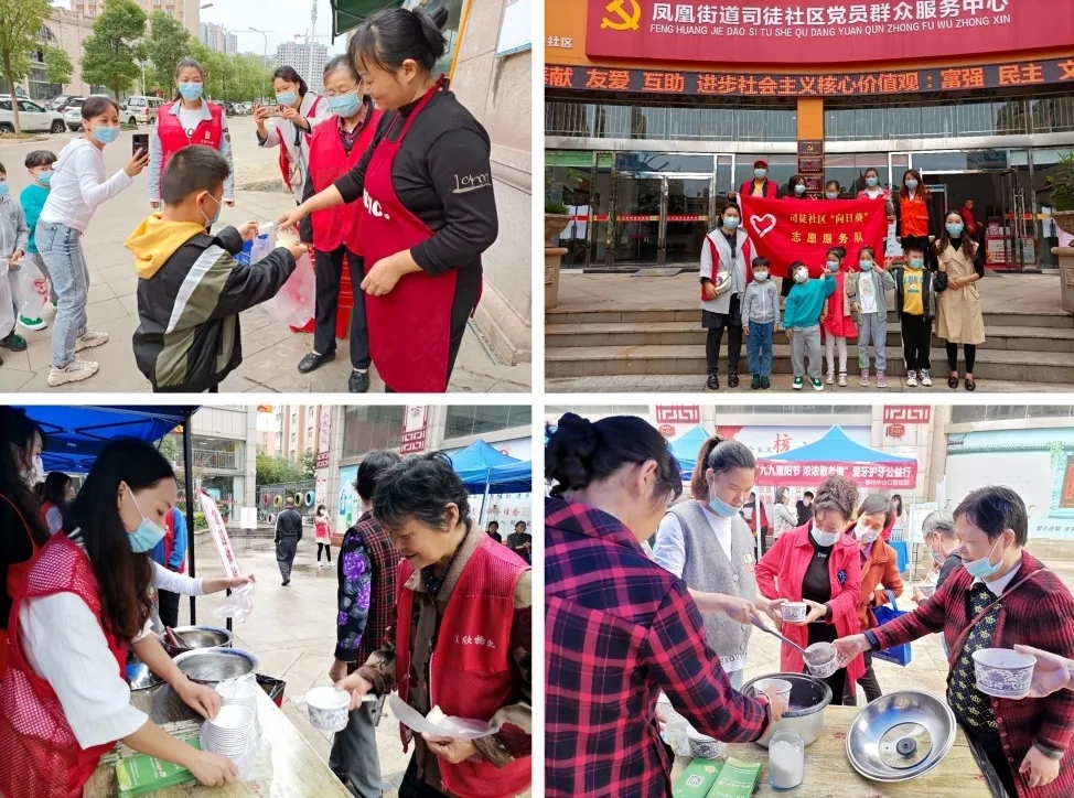 金秋送爽,岁岁重阳,农历九月九日,是我国传统的重阳节,也是温馨的老人节。为弘扬“尊老、敬老、爱老、助老”的中华民族传统美德,陪伴老年人度过一个属于他们自己的节日,2021年10月14日,由鄂州市鄂城区志愿服务总队文明风尚志愿服务分队主办,凤凰街道新时代文明实践所、凤凰街道司徒社区、司徒社区新时代文明实践站、司徒社区社工室沃桐儿童之家、耆乐司徒艺术团承办的“共享百家味 幸福耄耋心”-“我们的节日-重阳”主题活动在社区门前小广场举办。